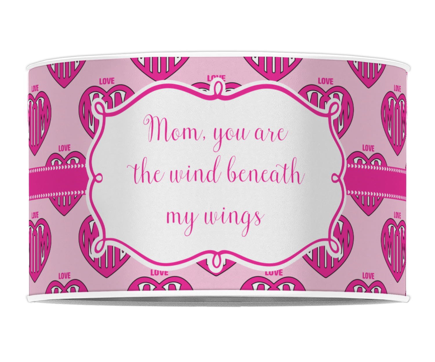 This design is perfect for Mother's Day and to show your mother how much you really love your mom! Our design background have the words Love & Mom; and the word Mom in inside a heart. We added our ribbon with hearts; we chose to use pinks and white and we chose to use a large label with the words "Mom, you are the wind beneath my wings".