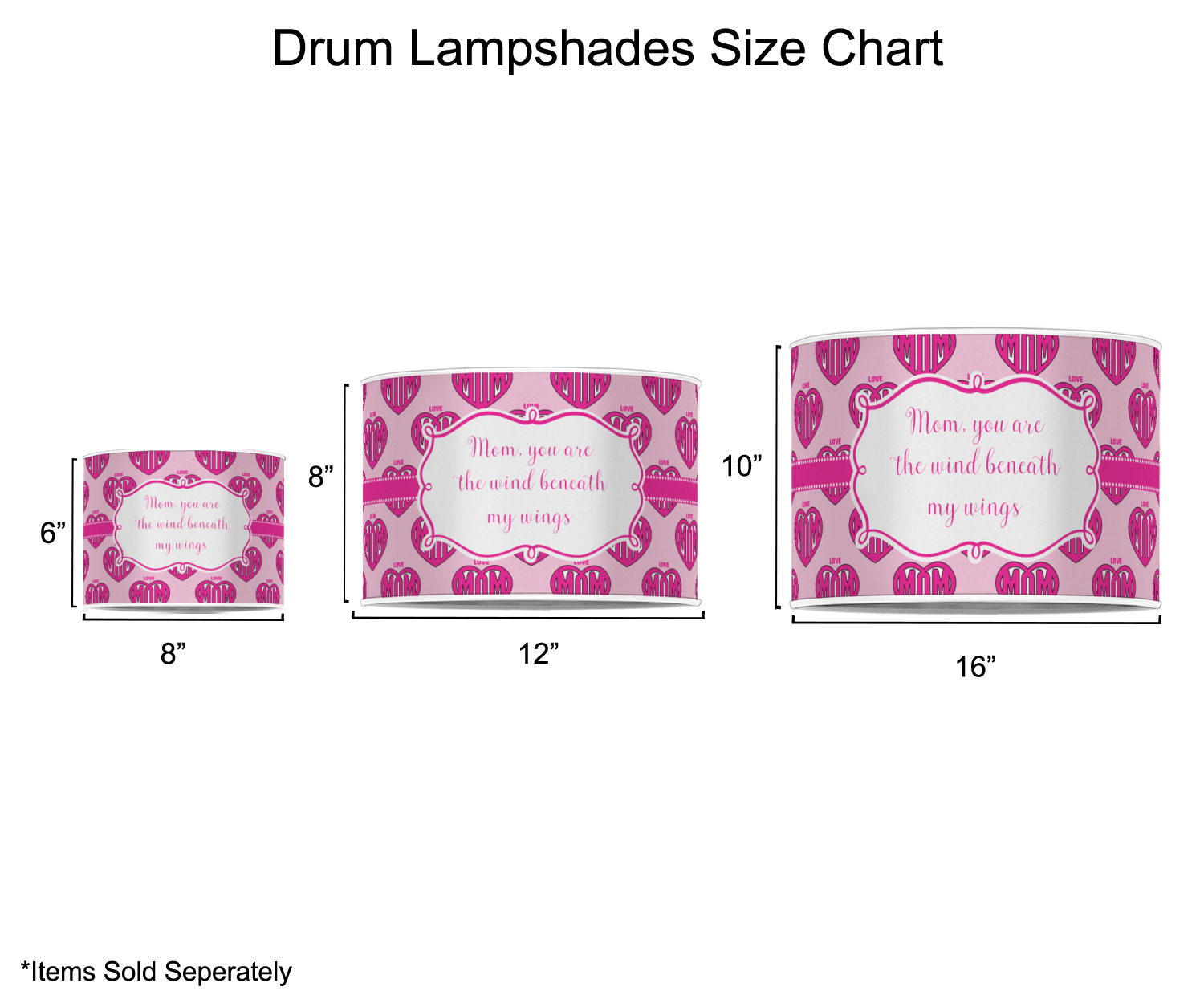 Our customized lamp shades also come in 3 different sizes: 8", 12" and 16", measuring at 8" in diameter by 6" tall, 12" in diameter by 8" tall, and 16" in diameter by 10" tall, respectively.