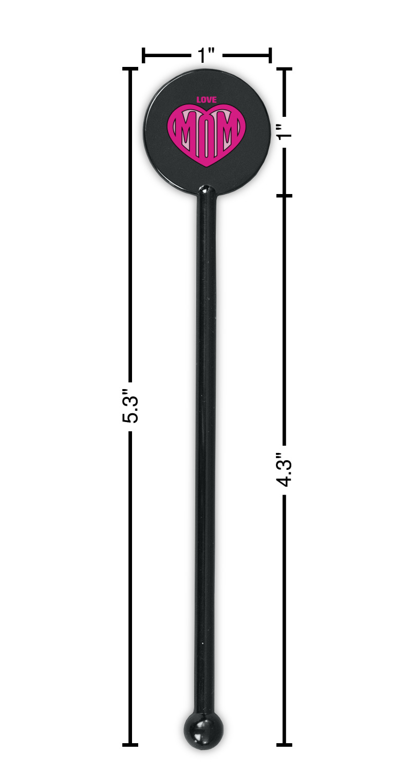 Shape + Symbol Designs for 5.5" Round Plastic Stir Sticks - Black - Double-Sided