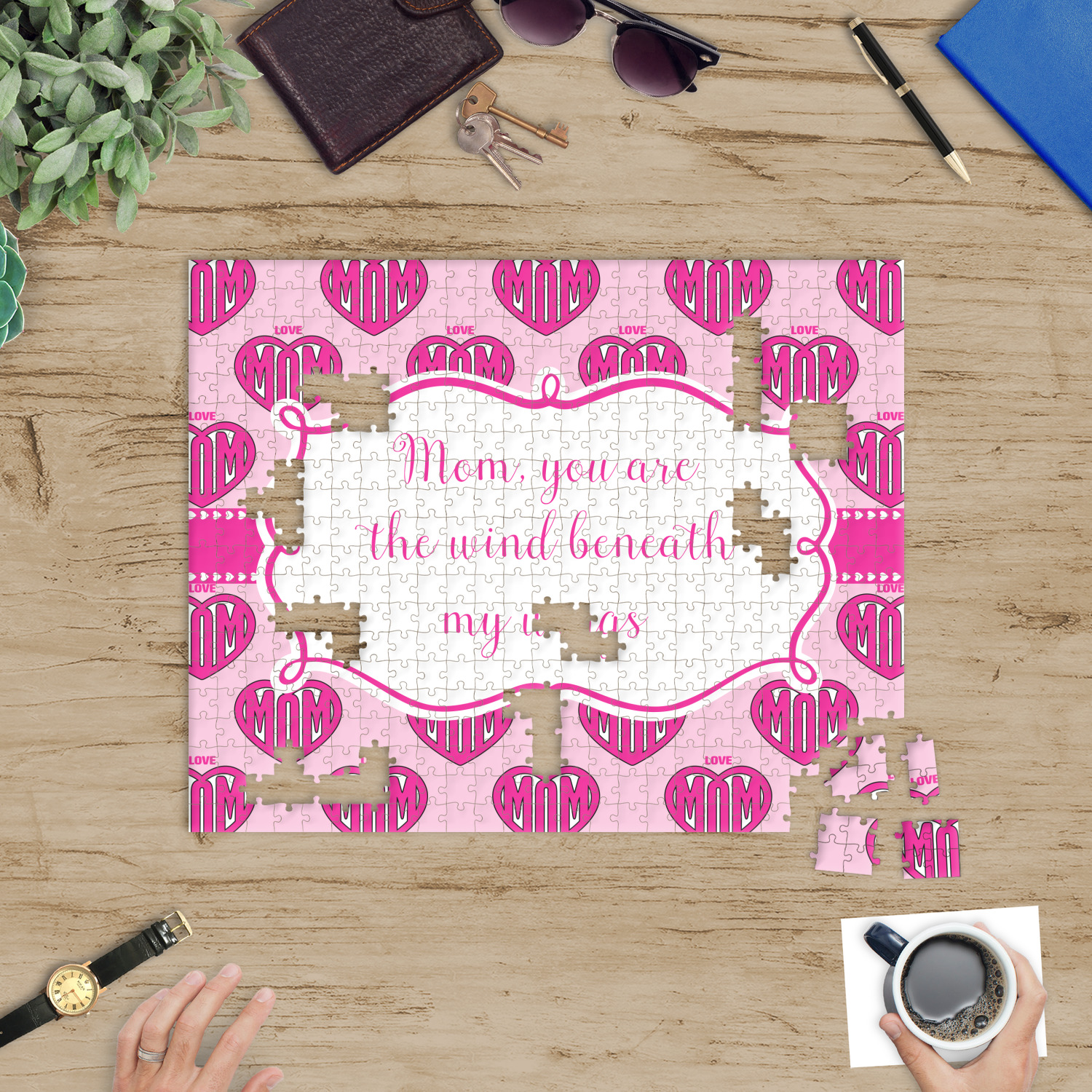 At YouCustomizeIt.com, you get to decide what you want on your puzzle. A scenic picture, a family photo, framed photo, photo with text, artwork, logo, patterns etc. You decide what you want.