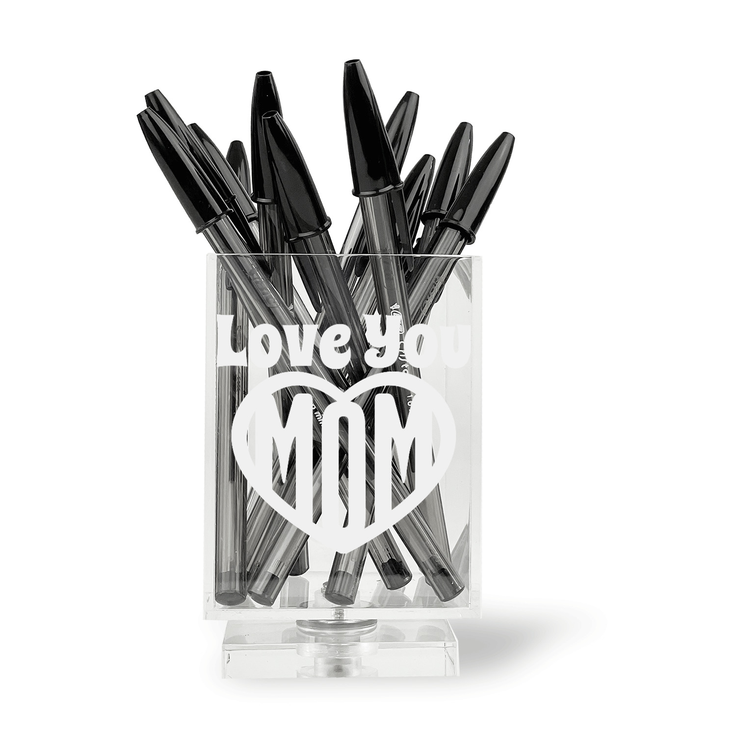 Add a great accessory to your desk with one of these acrylic pen holders. A great way to store your writing utensils, and personalized to suit your needs.