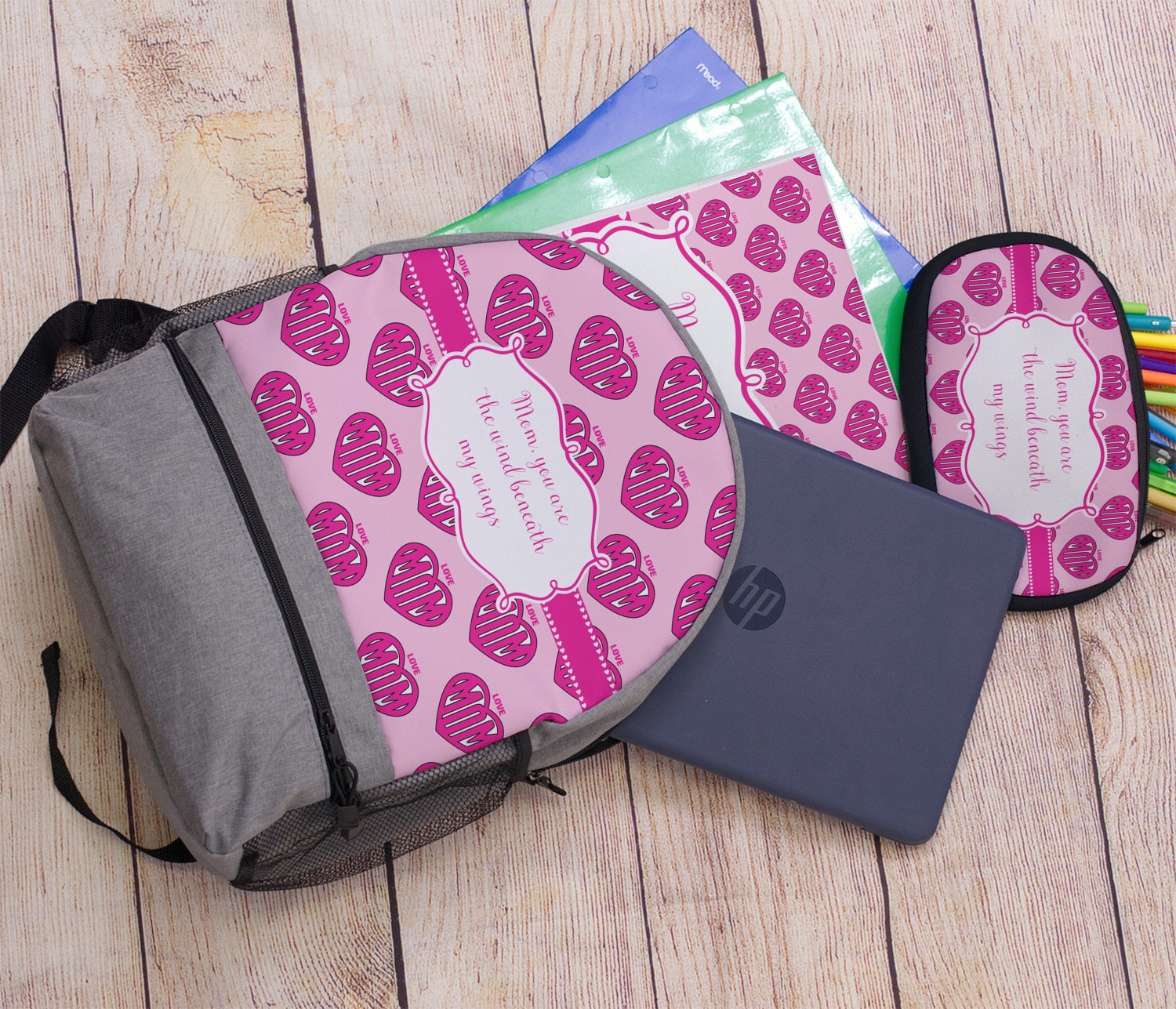 This design is perfect for Mother's Day and to show your mother how much you really love your mom! Our design background have the words Love & Mom; and the word Mom in inside a heart. We added our ribbon with hearts; we chose to use pinks and white and we chose to use a large label with the words "Mom, you are the wind beneath my wings".