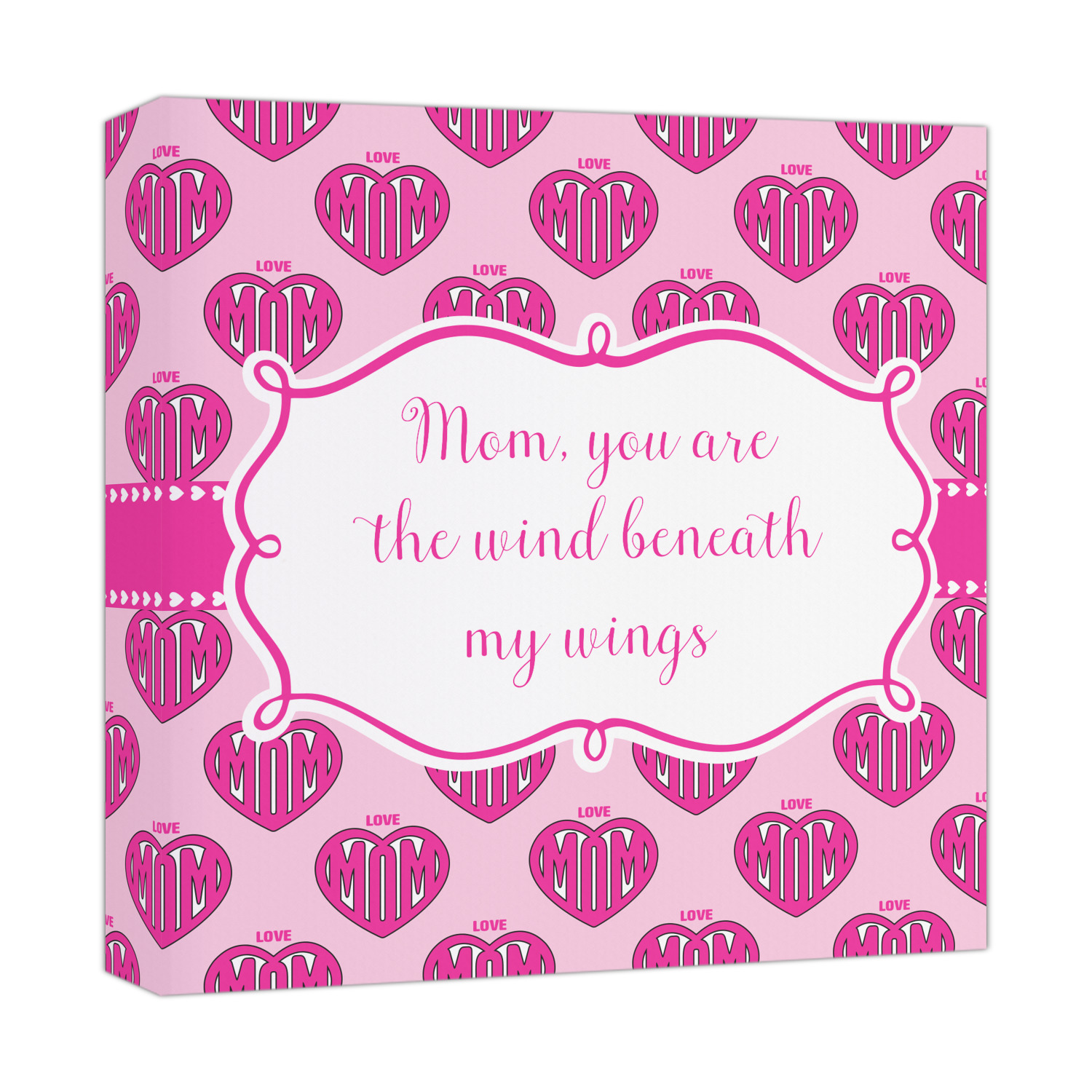 This design is perfect for Mother's Day and to show your mother how much you really love your mom! Our design background have the words Love & Mom; and the word Mom in inside a heart. We added our ribbon with hearts; we chose to use pinks and white and we chose to use a large label with the words "Mom, you are the wind beneath my wings".