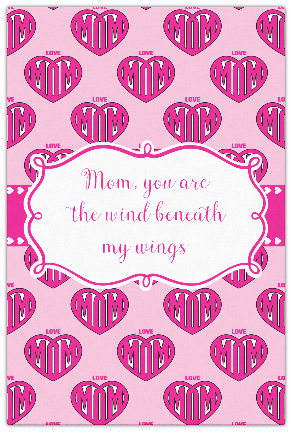 This design is perfect for Mother's Day and to show your mother how much you really love your mom! Our design background have the words Love & Mom; and the word Mom in inside a heart. We added our ribbon with hearts; we chose to use pinks and white and we chose to use a large label with the words "Mom, you are the wind beneath my wings".