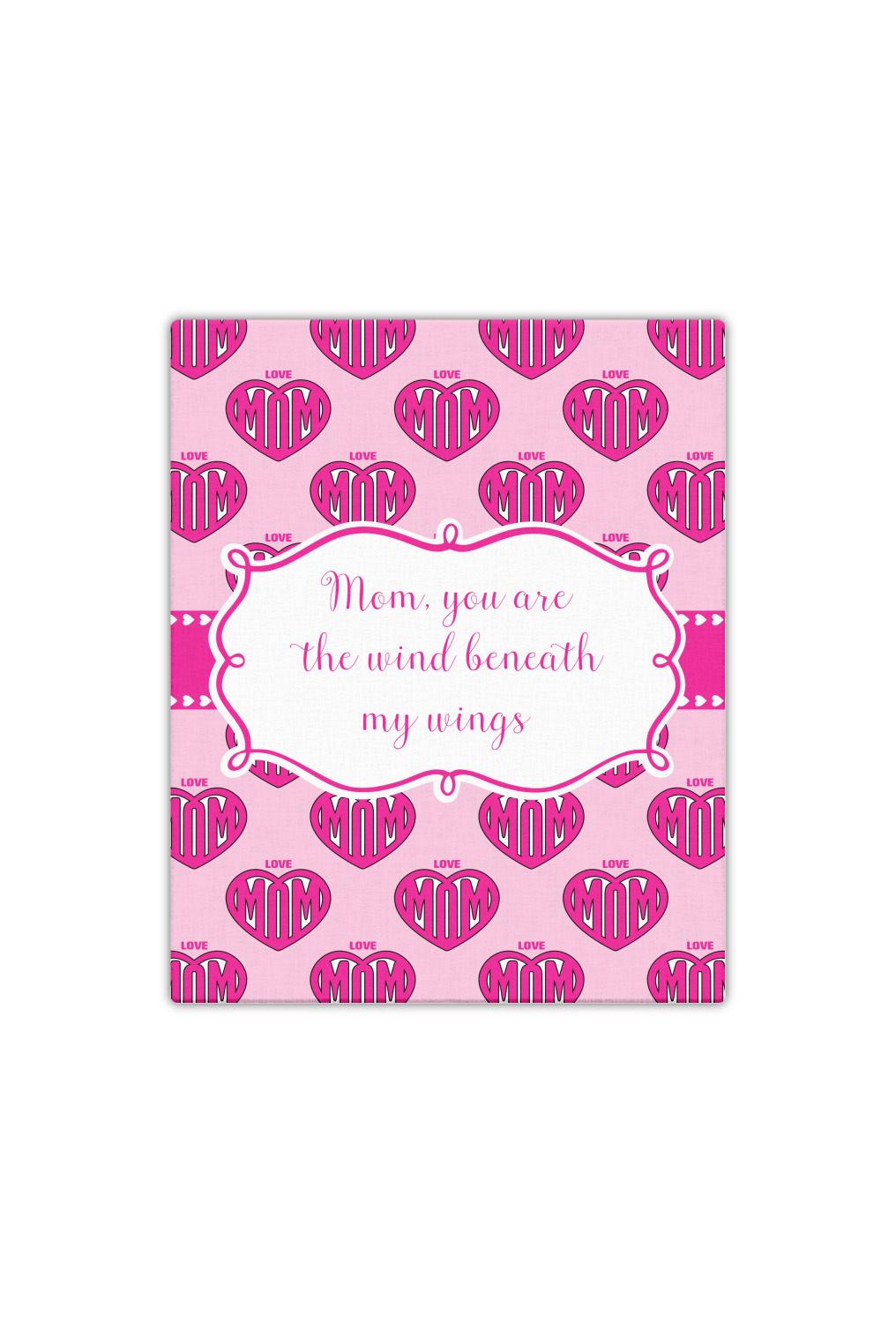 This design is perfect for Mother's Day and to show your mother how much you really love your mom! Our design background have the words Love & Mom; and the word Mom in inside a heart. We added our ribbon with hearts; we chose to use pinks and white and we chose to use a large label with the words "Mom, you are the wind beneath my wings".