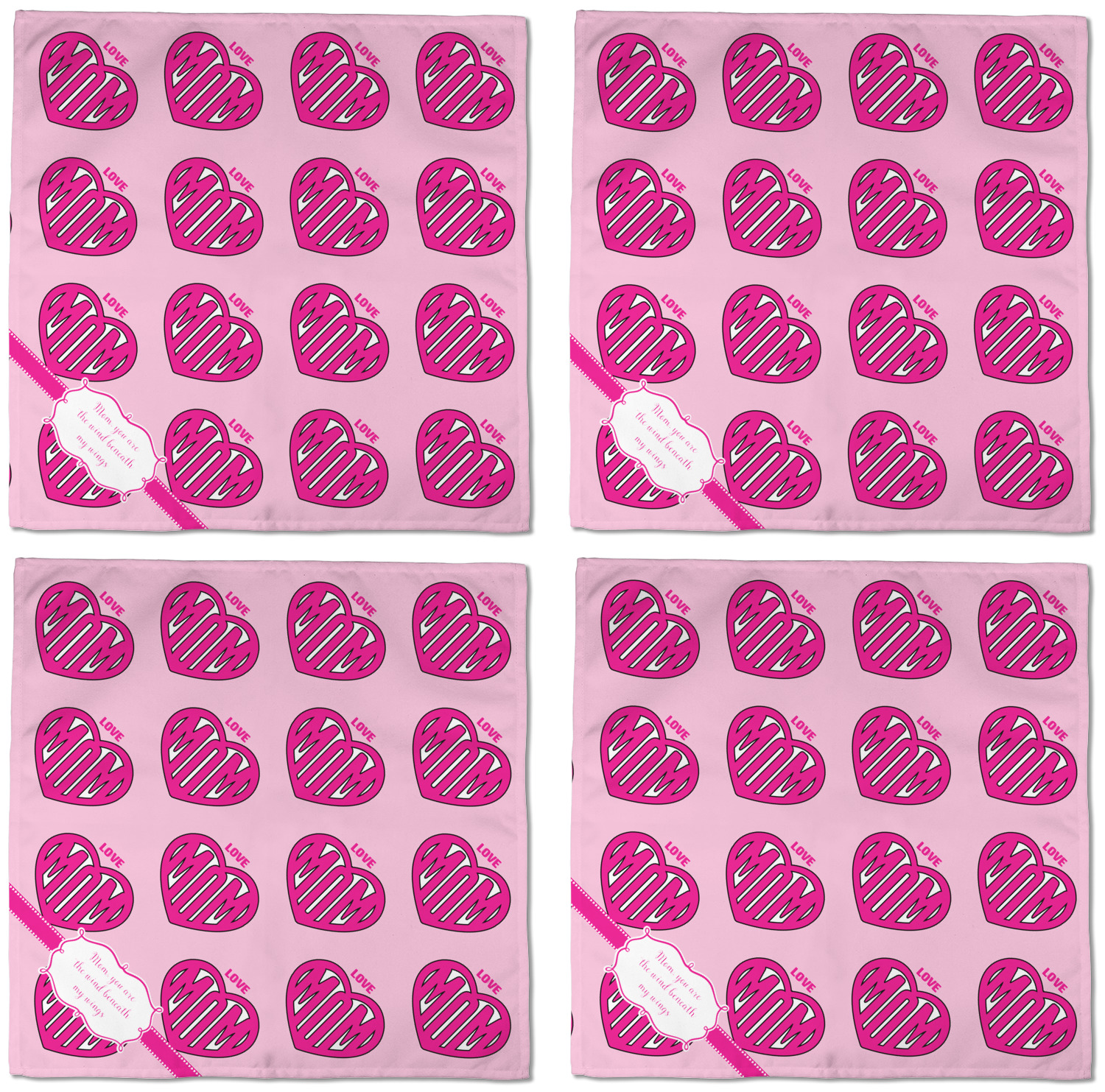 Each customizable cloth napkin is a polyester material guaranteed for long-term use. Since our napkins are cloth, it serves as a great reusable and eco-friendly dining decor. We sell personalized napkins individually or as a set of 4! Print your own unique design on all four napkins, or create four individual designs for each napkin! We offer two different napkin sizes - Cocktail napkins (approx. 10 x 10) and Dinner napkins (approx. 20 x 20). We print your design on one side, perfect for displaying your custom designed lunch napkins in any fold or table setting!