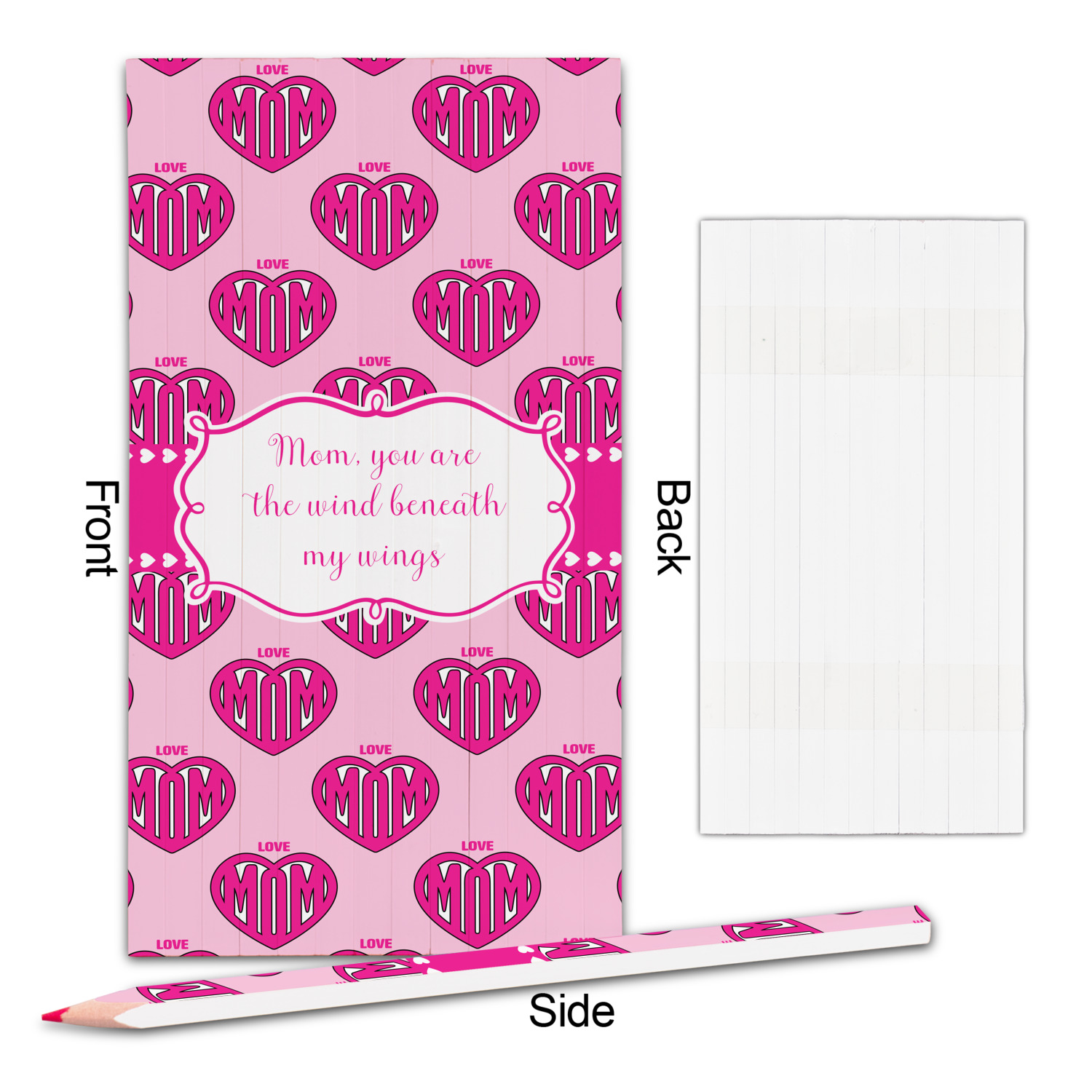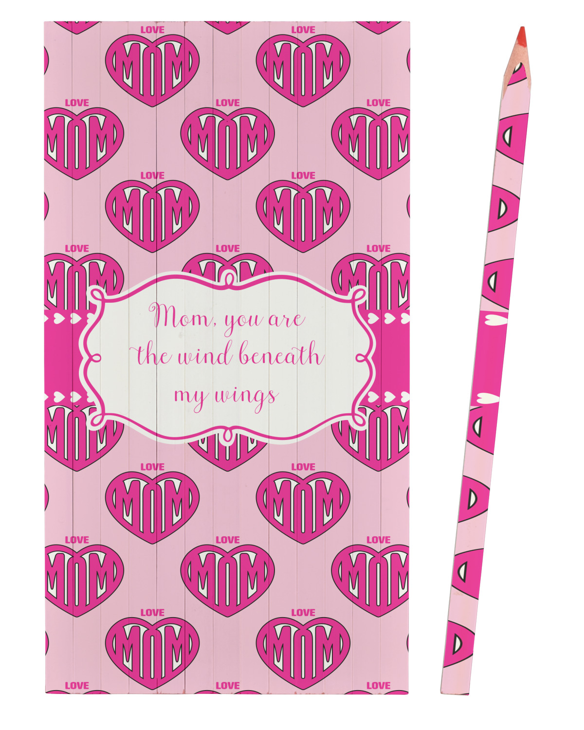 This design is perfect for Mother's Day and to show your mother how much you really love your mom! Our design background have the words Love & Mom; and the word Mom in inside a heart. We added our ribbon with hearts; we chose to use pinks and white and we chose to use a large label with the words "Mom, you are the wind beneath my wings".