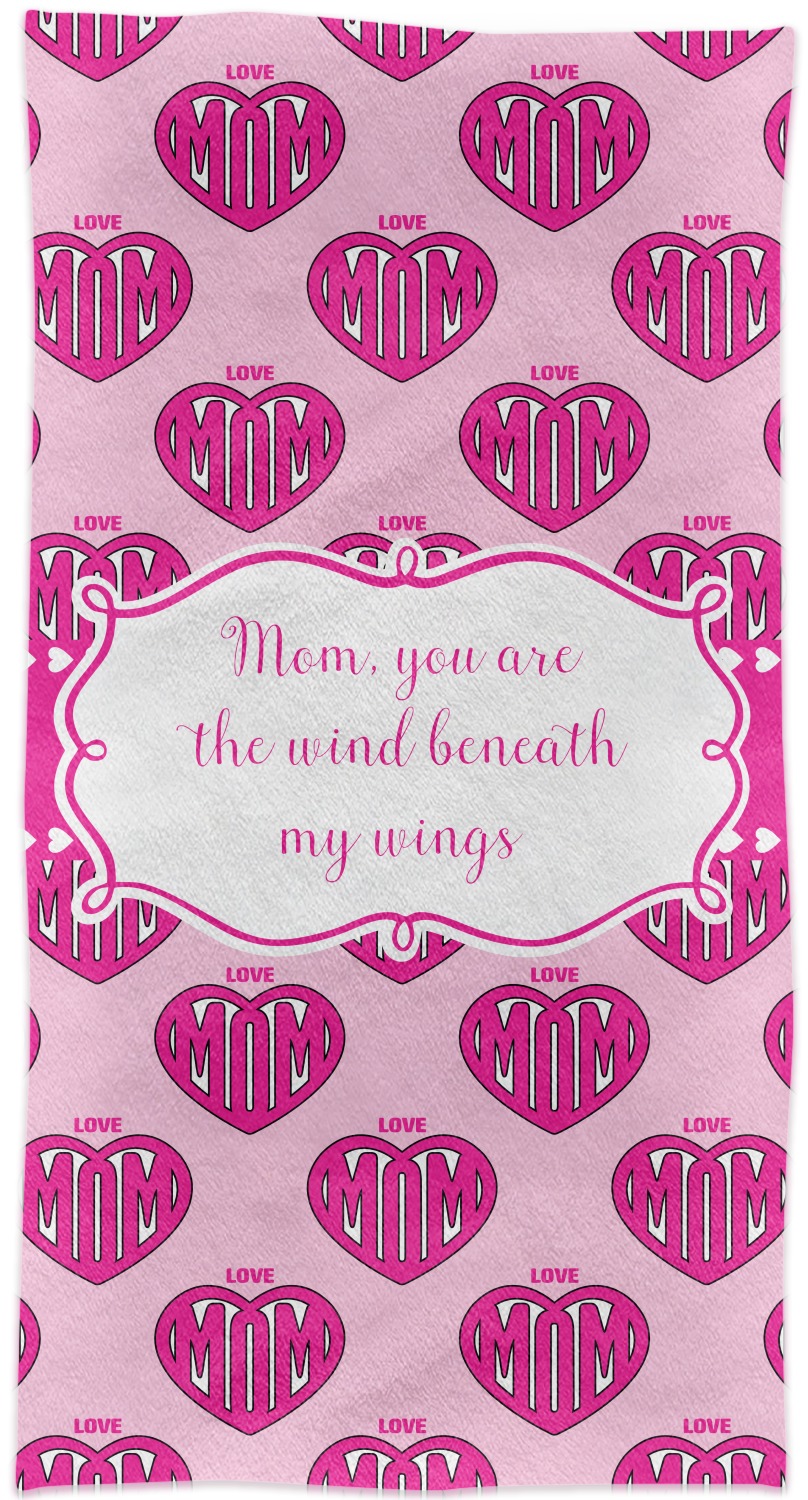 This design is perfect for Mother's Day and to show your mother how much you really love your mom! Our design background have the words Love & Mom; and the word Mom in inside a heart. We added our ribbon with hearts; we chose to use pinks and white and we chose to use a large label with the words "Mom, you are the wind beneath my wings".