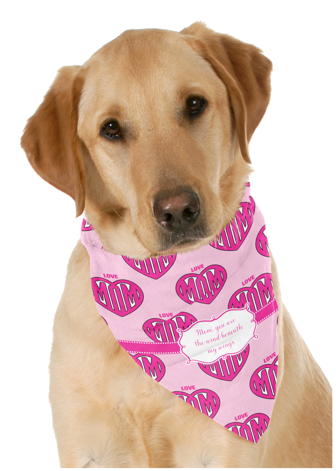 This beautiful pet bandana really is the perfect accessory. It is made from a silky feeling polyester and measures at approximately 23" x 23". Your personalization will be printed on a diagonal, so that you are able to read the personalization when folded into a triangle. This bandana fits best on large dogs, but can be folded smaller if there is no personalized text to fit smaller pets.