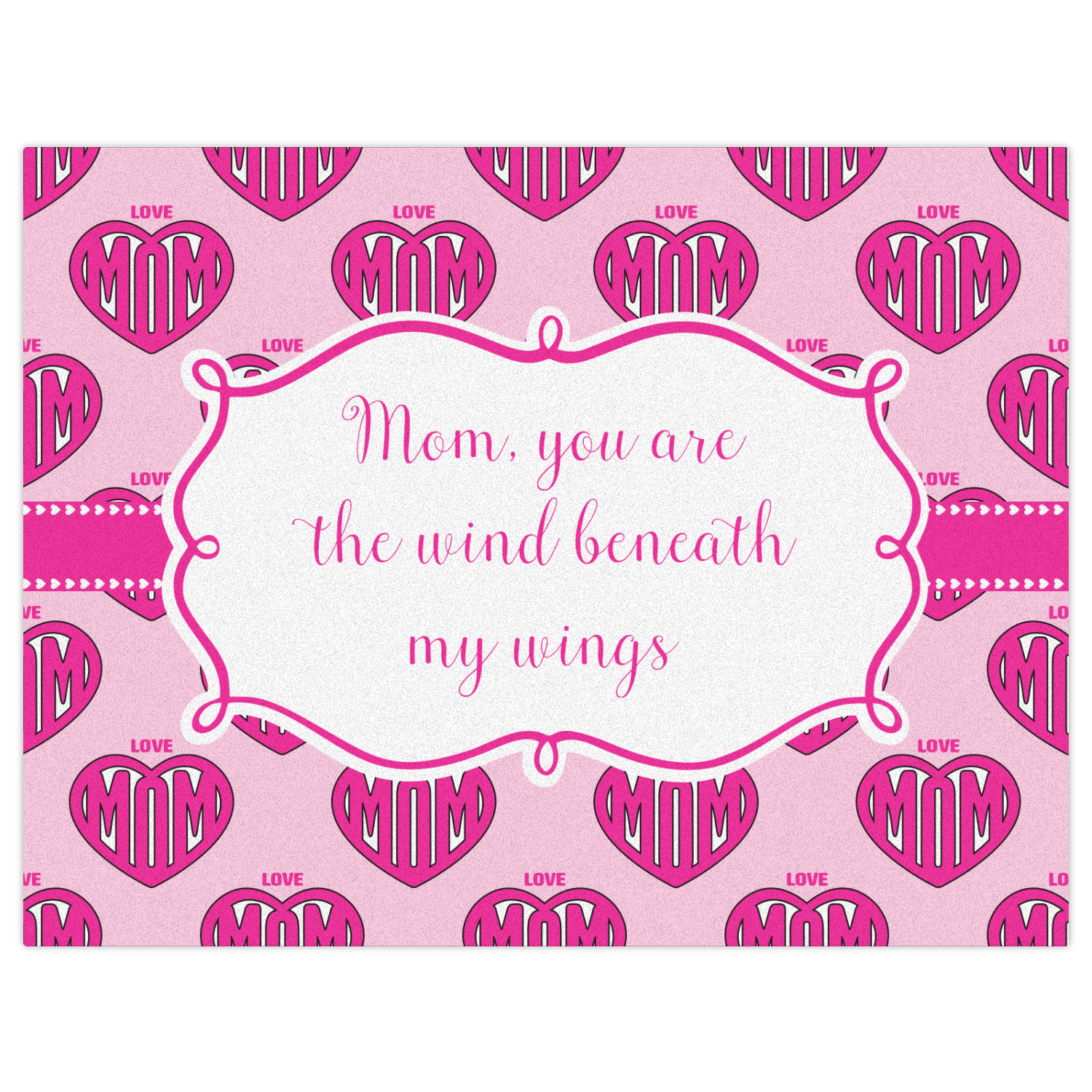 This design is perfect for Mother's Day and to show your mother how much you really love your mom! Our design background have the words Love & Mom; and the word Mom in inside a heart. We added our ribbon with hearts; we chose to use pinks and white and we chose to use a large label with the words "Mom, you are the wind beneath my wings".