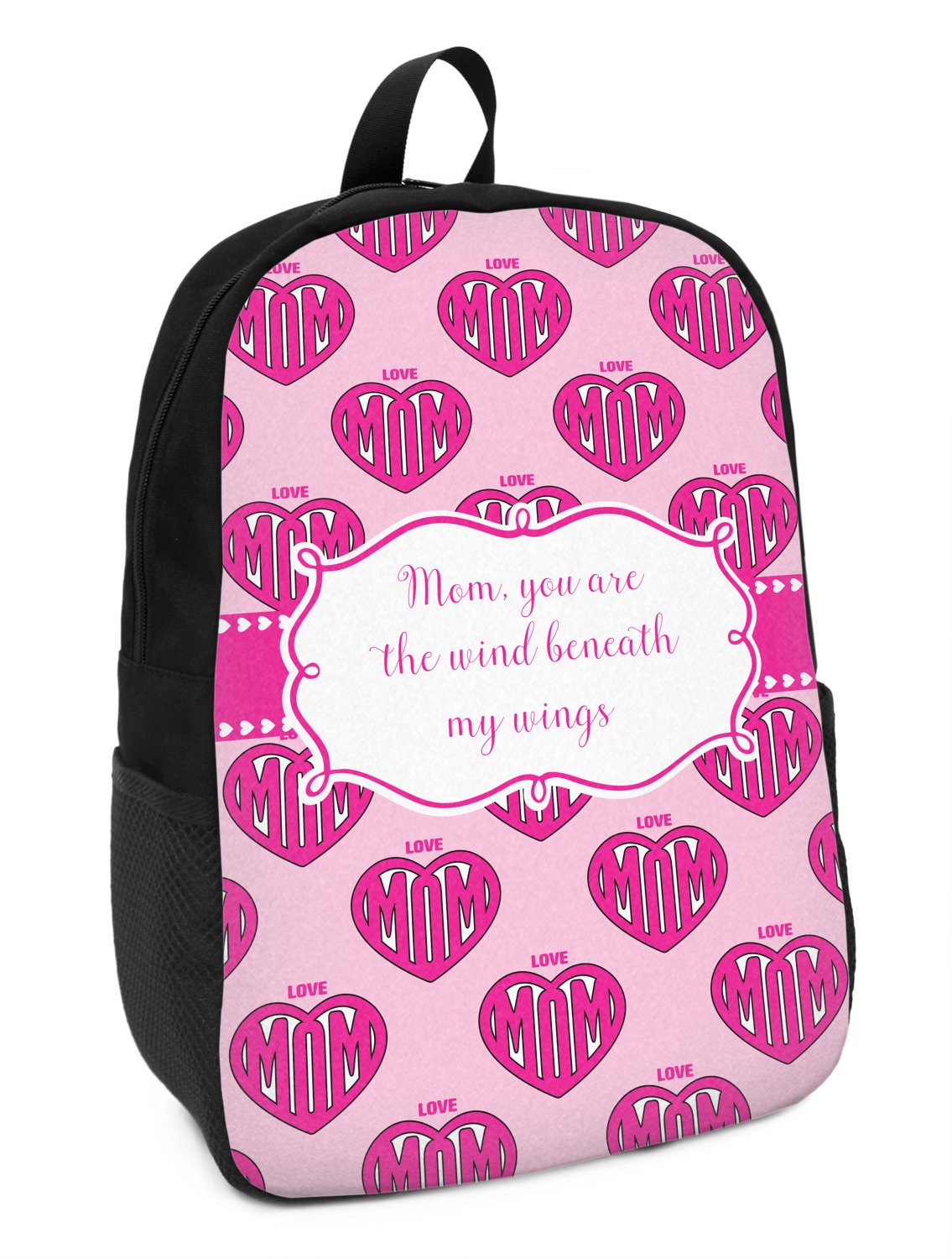This design is perfect for Mother's Day and to show your mother how much you really love your mom! Our design background have the words Love & Mom; and the word Mom in inside a heart. We added our ribbon with hearts; we chose to use pinks and white and we chose to use a large label with the words "Mom, you are the wind beneath my wings".