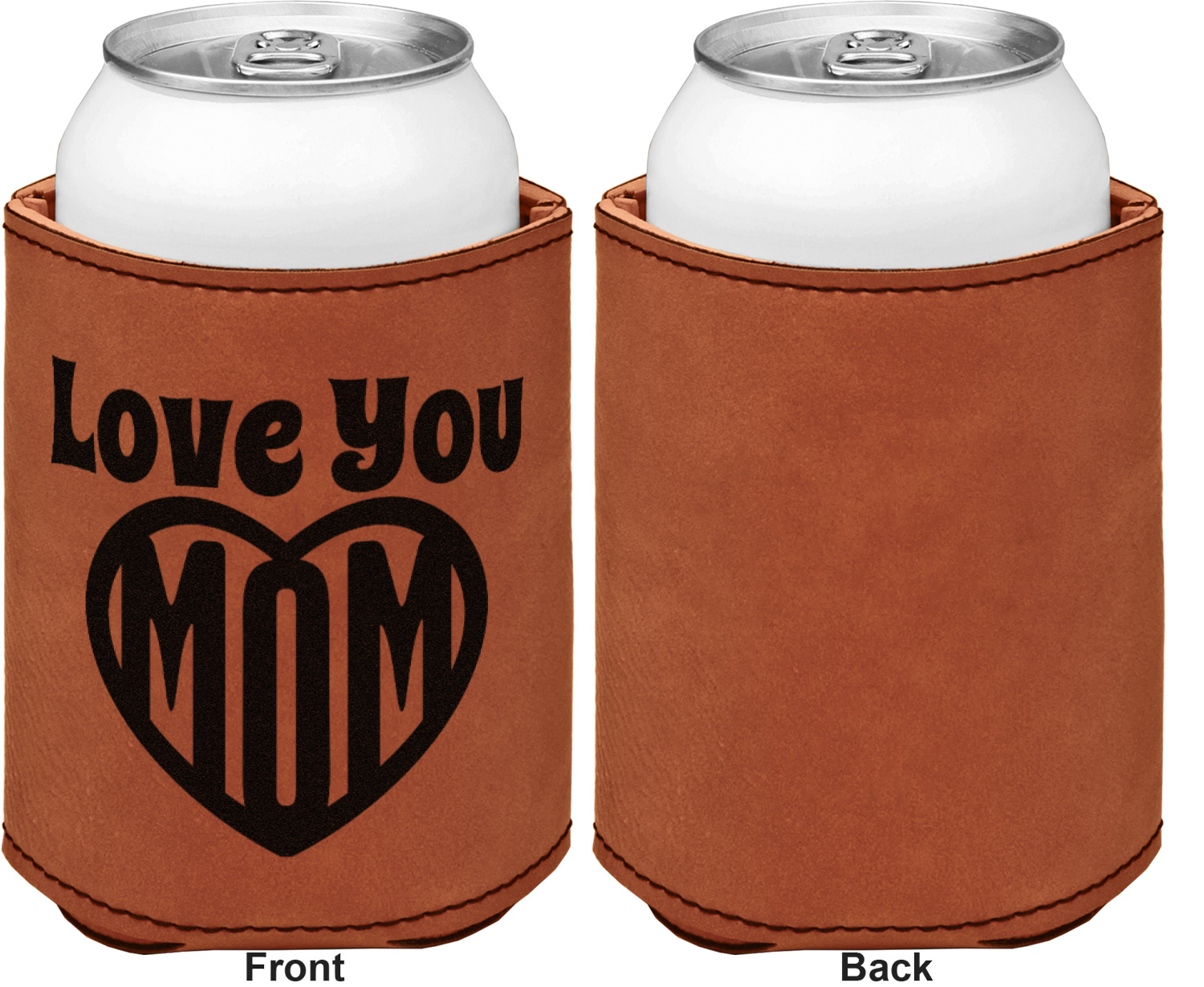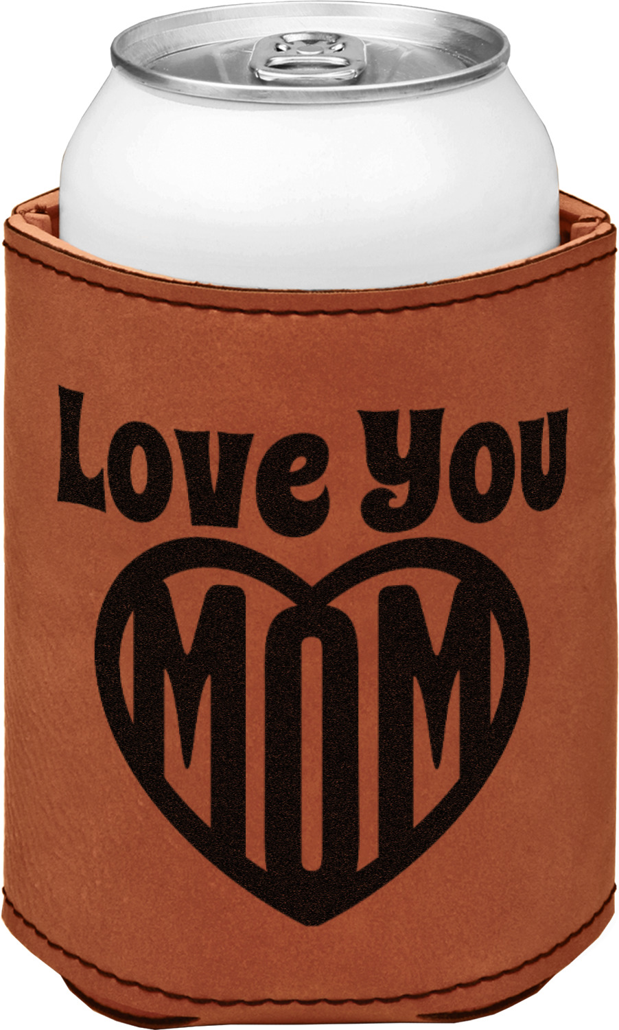 This can sleeve is made from a cognac-brown leatherette and stitched with a sturdy, black thread. A slim padding lines the inside of your can sleeve to allow for a better fit once your drink is inserted. The sleeve itself measures at 4 by 4.5 inches, allowing this custom can sleeve to accommodate most canned drinks. Your personalized design can be engraved on the front and back, or solely the front. When laser-engraved, your design appears as a black coloration which contrasts the leatherette nicely.