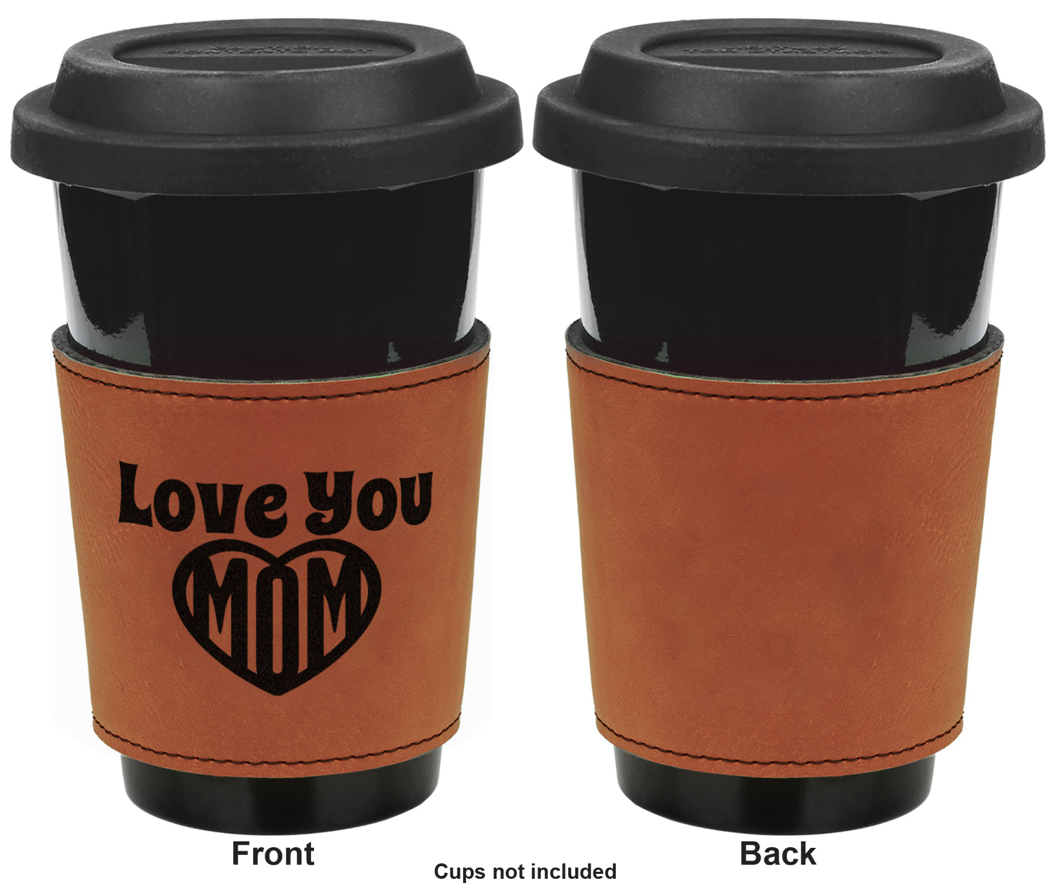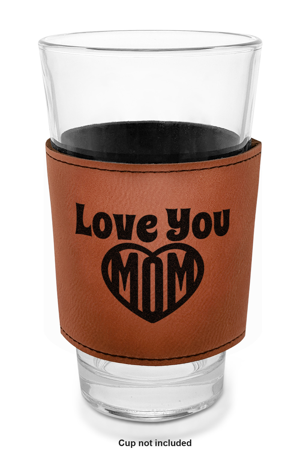 This cup sleeve is made from a suave, cognac-brown leatherette and finished with an intricate, black stitch. The interior of this can sleeve is fabricated from a thin foam material to help insulate your mug's contents. The sleeve is specifically made to suit tapered glasses or mugs, so the top's diameter is 3.5 inches, while the bottom's diameter is 2.75 inches. Your customized design will be laser engraved into the leatherette, leaving behind crisp, black imprint. With these products, we provide you with the option of engraving the front and back, or the front only.