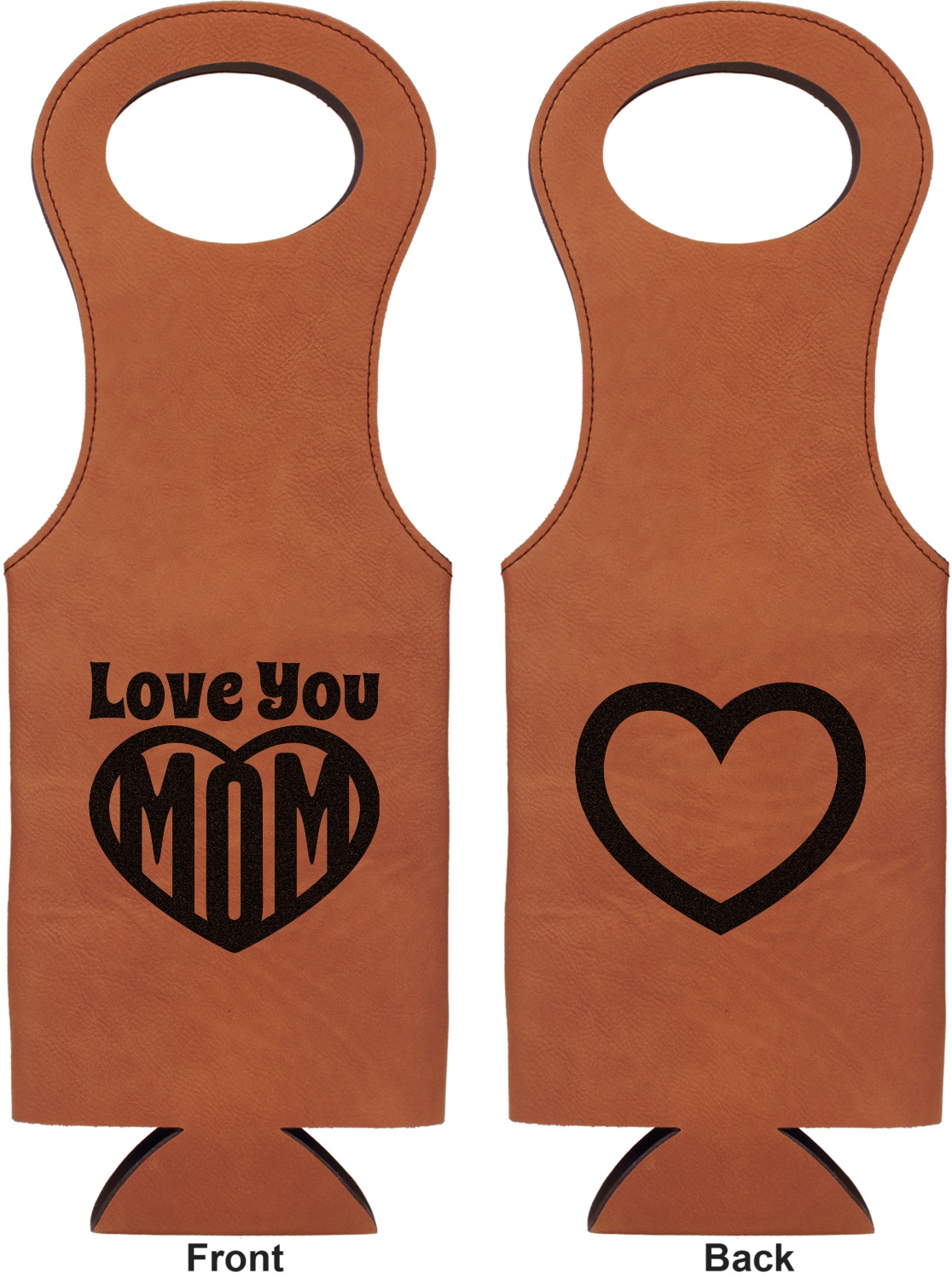 This wine carrier is made from a stunning leatherette, in a cognac-brown color. Strong, black stitching lines the sides of your wine bottle bag and provides extra durability. The interior is lined with a padded, black material to allow for a snug fit once your bottle is placed inside. At the top of this wine gift bag, you'll find two oval shaped handles that elegantly complements the rest of the bag's style. We provide you with the option of laser-engraving the front, or the front and back of your new personalized wine bag!
