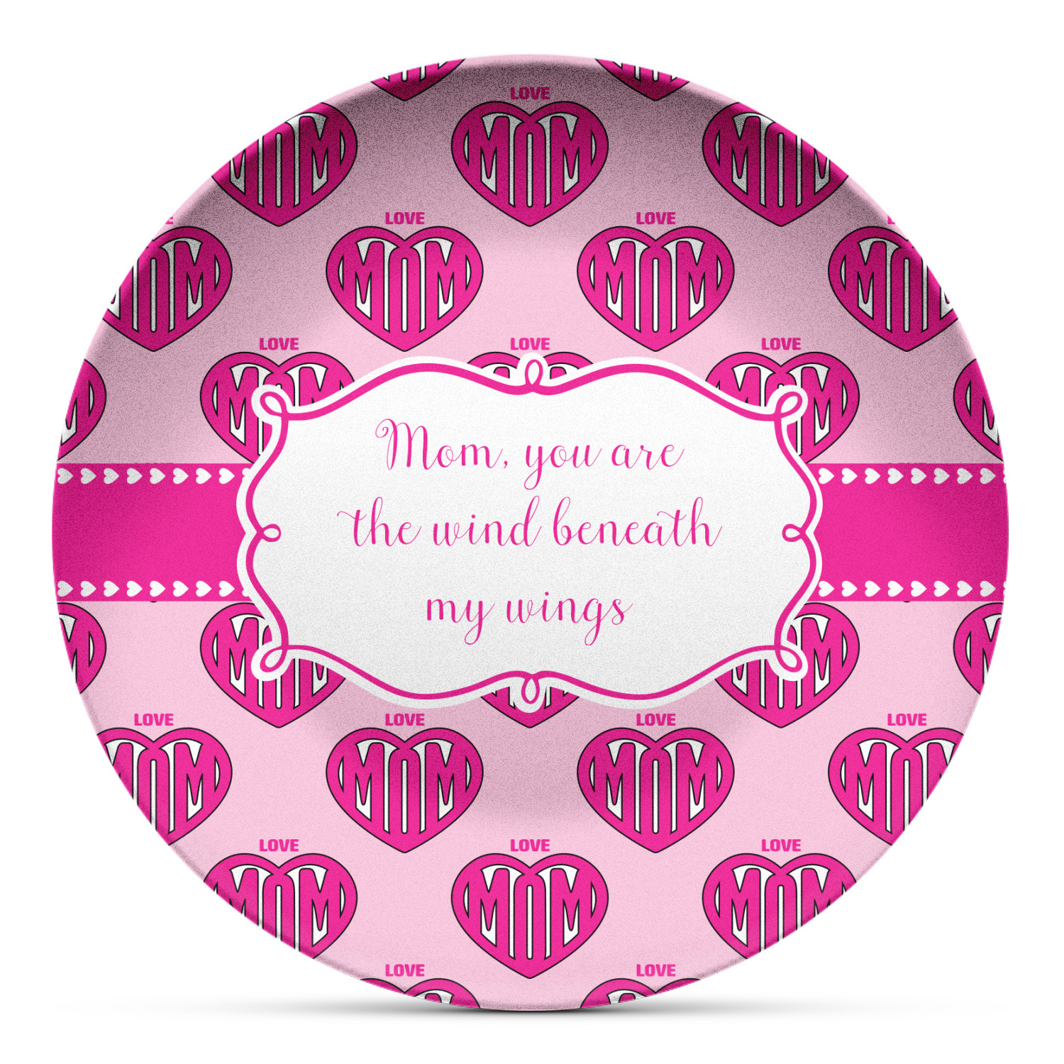 These plastic plates have the versatility, durability, and weight of melamine plates but are instead are made from a melamine-free composite, thermo-set, polymer plastic. These plates are made right here, in the USA, without the use of harmful chemicals, such as BPAs, formaldehyde, or DEHPs. Our elegant plastic plates can even withstand temperatures of up to 250 degrees Fahrenheit, for up to 60 minutes. The entire face of the plate exhibits your personalization in bright, vibrant color, and the plate's diameter measures at 10" long.