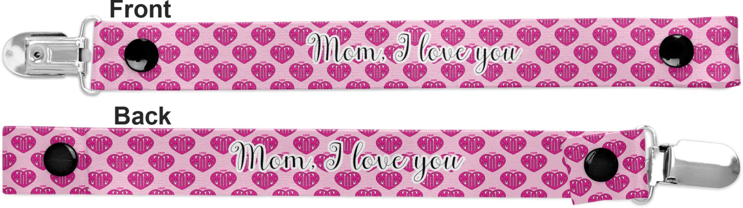 This personalized pacifier clip is the ideal size and measures at approximately 7.5 inches in length, when either end is snapped closed. On one end, you'll find a snap button. This button of your baby's pacifier holder is what can be attached to their pacifier to hold is securely in place. Simply open the snap, slip it through the pacifier opening, and snap it back into place. On the opposite end of this baby pacifier holder, you'll find a metal clip that can secure to a baby's collar or sleeve. This clip ensures that the strap stays in place, and that your baby's pacifier is always on hand.