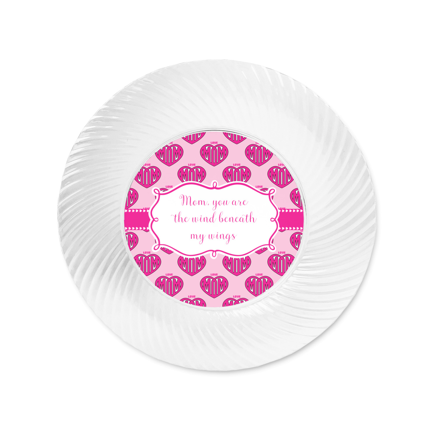 Made from a beautiful clear plastic plate as a base, your design is printed to the underside of the plate. The outside of the plate has a classic swirl texture to it for a high quality look and feel.