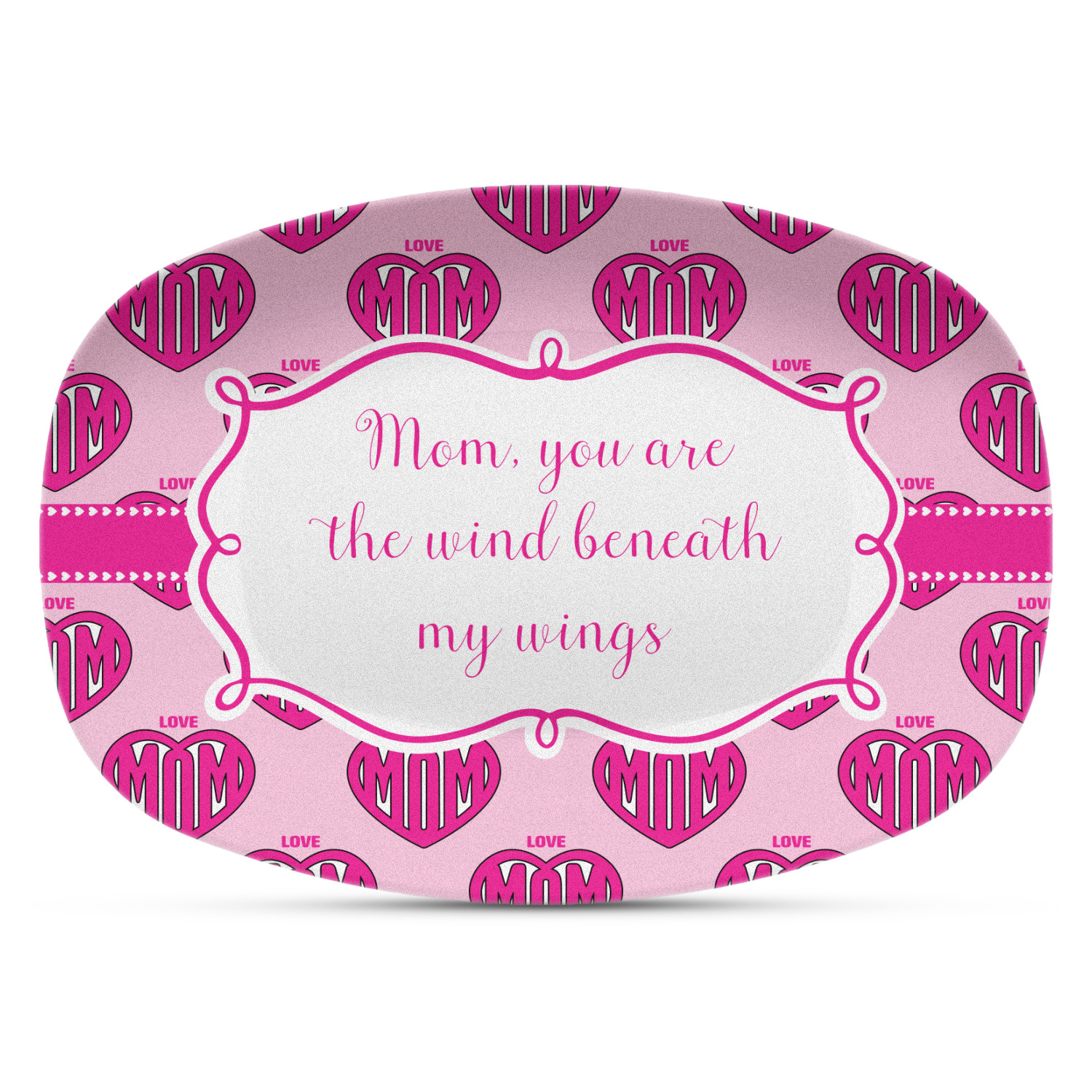 These serving platters are made from a composite, thermo-set, polymer plastic that gives it the versatility, durability, and weight of a melamine platter, without any of the downsides of melamine. These personalized platters, can withstand temperatures up to 250 degrees Fahrenheit, for up to 60 minutes. No harmful chemicals, such as BPA, formaldehyde, and DEHPs were used in the manufacturing of this product. This large serving platter measures at 14" x 10.25", and is spacious enough to hold any of your appetizers or bite-sized desserts. The platter exhibits your personalization across the entirety of its front.