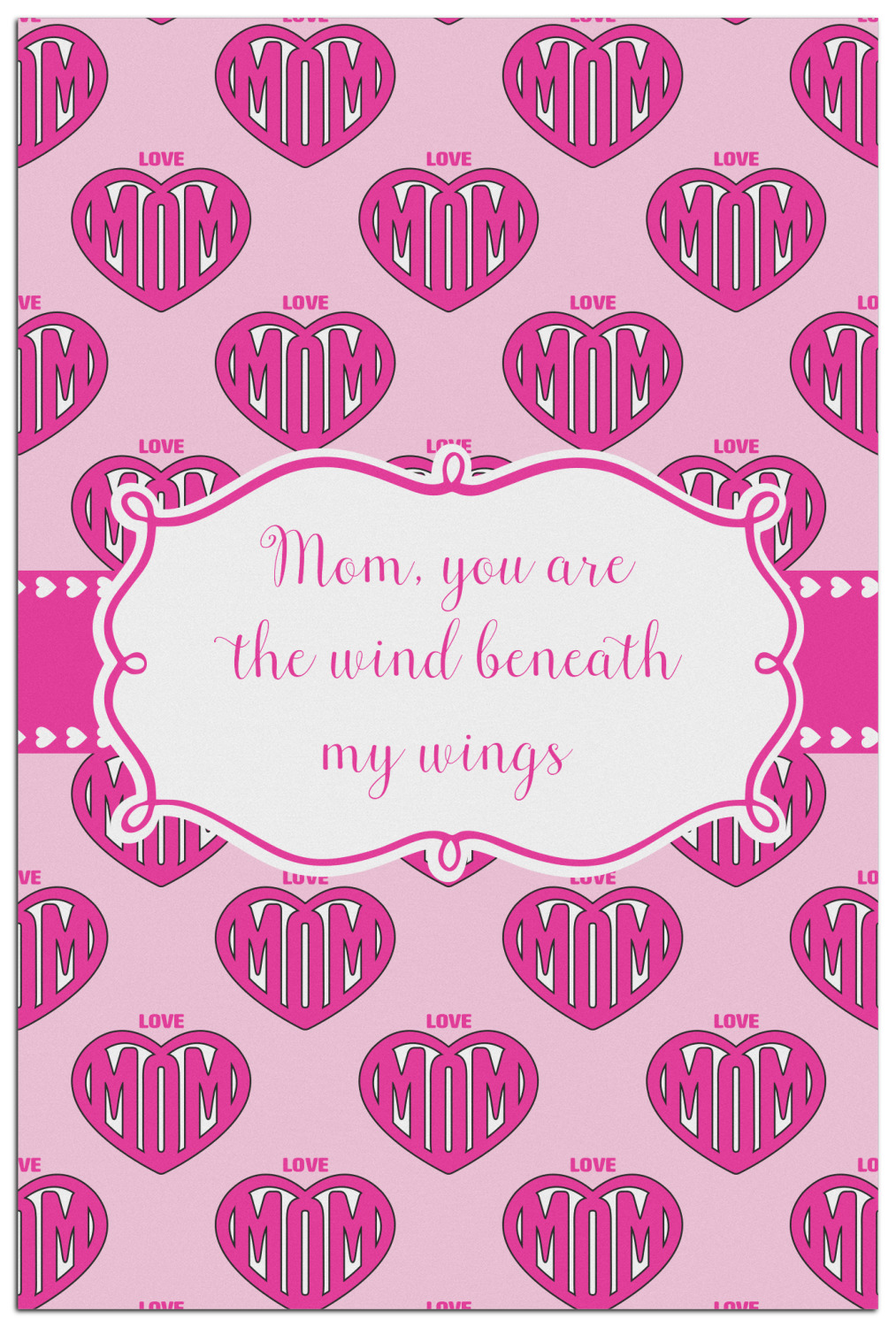 This design is perfect for Mother's Day and to show your mother how much you really love your mom! Our design background have the words Love & Mom; and the word Mom in inside a heart. We added our ribbon with hearts; we chose to use pinks and white and we chose to use a large label with the words "Mom, you are the wind beneath my wings".