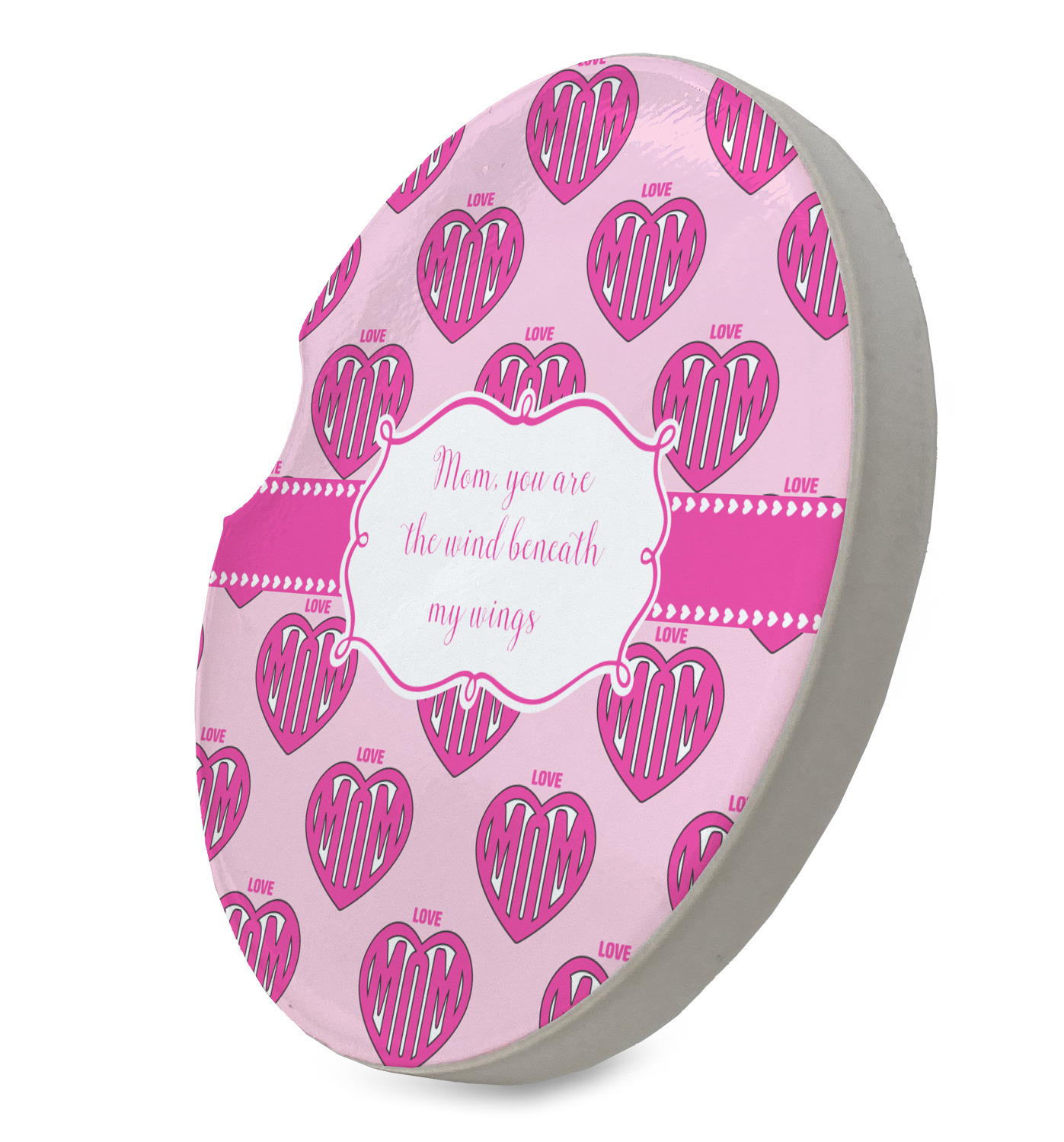 These sandstone coasters are round, robust, and feature a smoothed glossy side to exhibit your customized design. With a 2.5 inch diameter, these stone coasters will fit snugly inside most cup holders. This model also features a semi-circle shaped divot that allows for easy removal, despite the tight fit. You can purchase these car cup holder coasters in a pair, or singularly, depending on your needs.