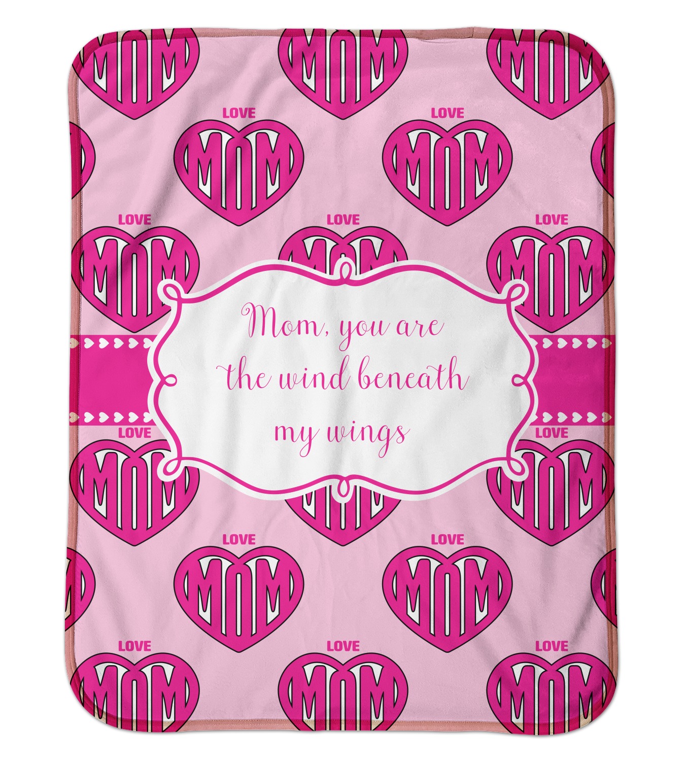 This design is perfect for Mother's Day and to show your mother how much you really love your mom! Our design background have the words Love & Mom; and the word Mom in inside a heart. We added our ribbon with hearts; we chose to use pinks and white and we chose to use a large label with the words "Mom, you are the wind beneath my wings".