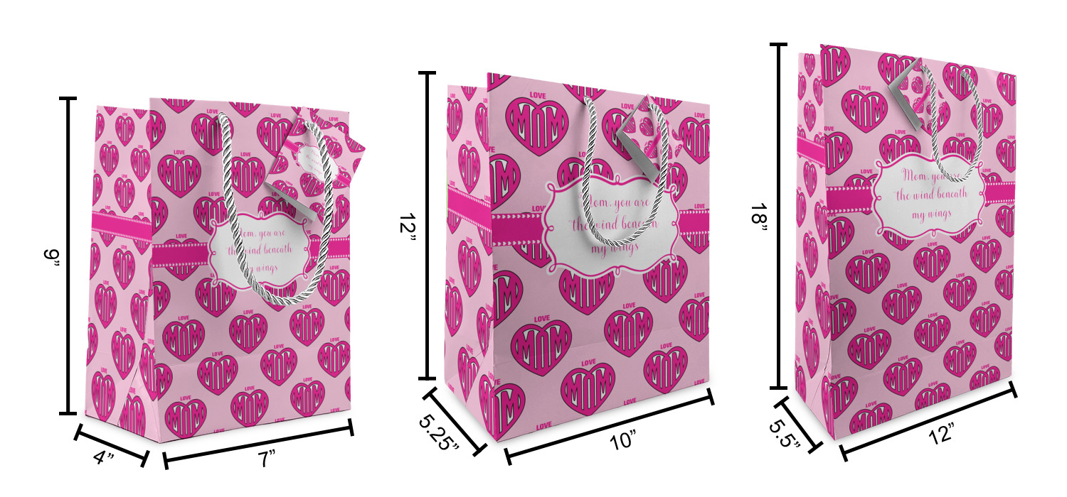 These custom gift bags come in your choice of 3 sizes. Their dimensions are below: