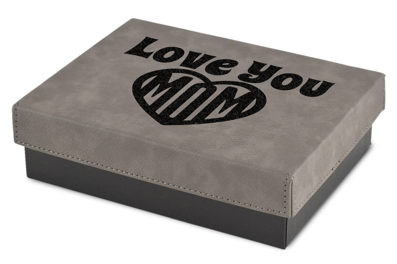 These gift boxes are available in 3 different sizes to accommodate various sized gifts. Available in gray as a neutral color for any occasion as well as to showcase your design boldly. Engraved with a laser this high quality paper board and faux leather gift box is unique and makes any gift stand out.