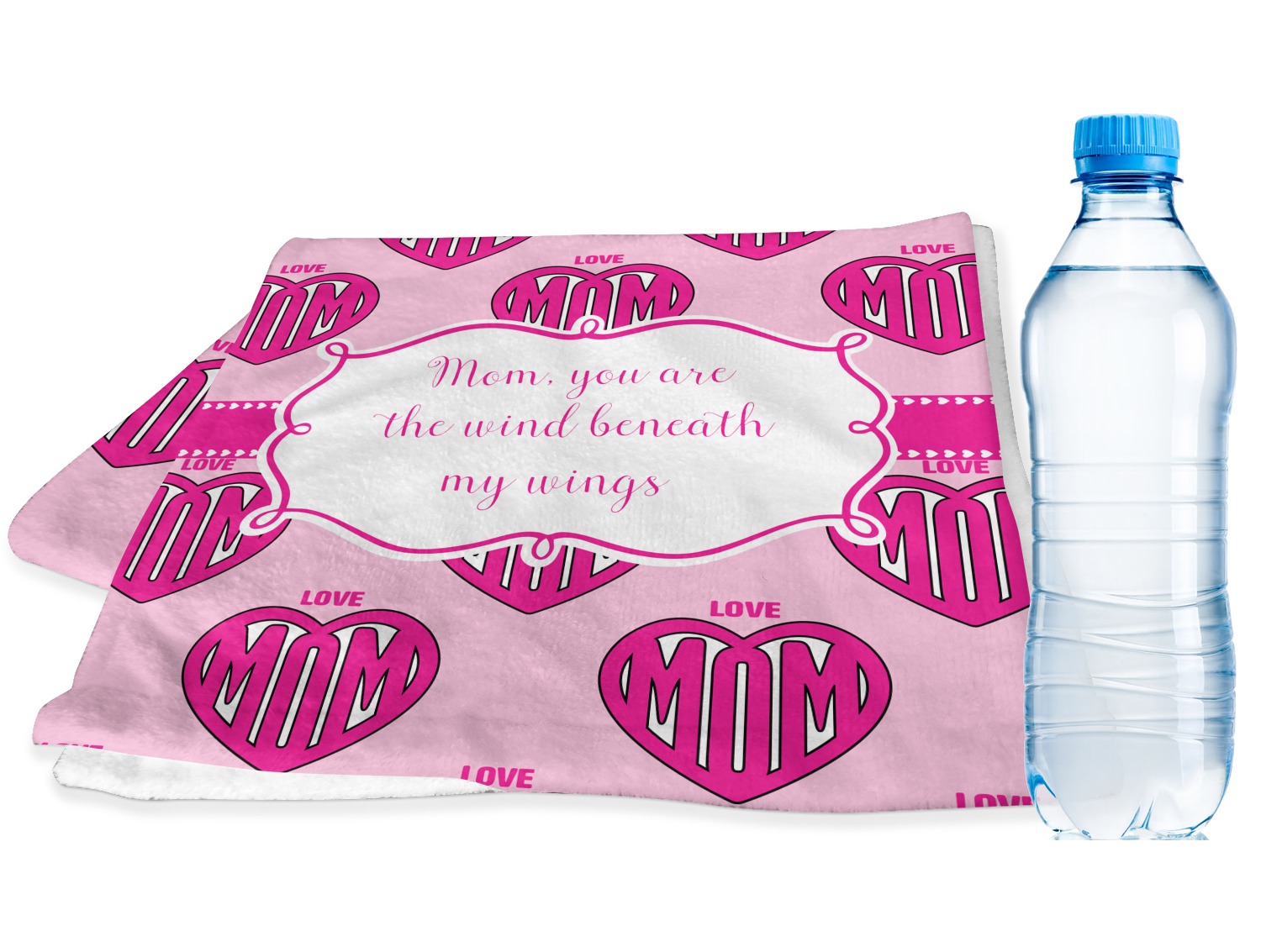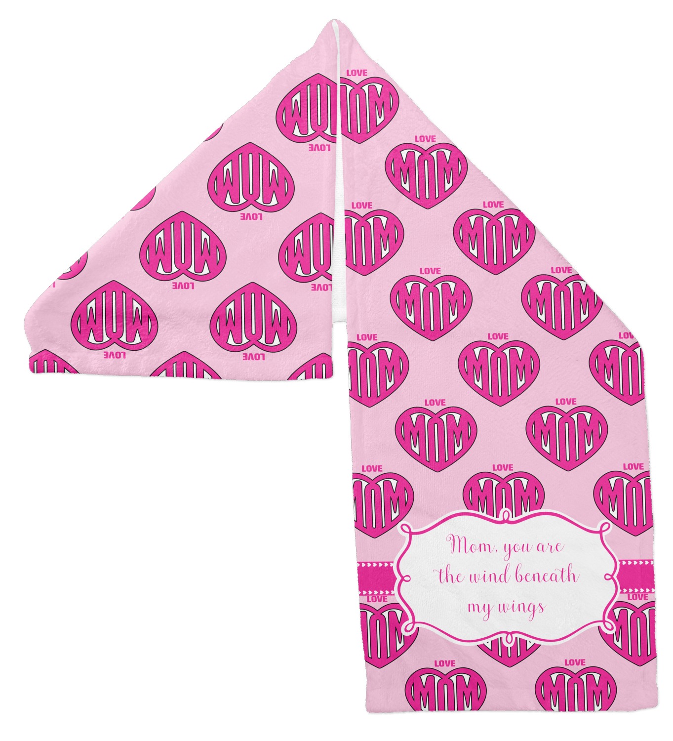 This design is perfect for Mother's Day and to show your mother how much you really love your mom! Our design background have the words Love & Mom; and the word Mom in inside a heart. We added our ribbon with hearts; we chose to use pinks and white and we chose to use a large label with the words "Mom, you are the wind beneath my wings".
