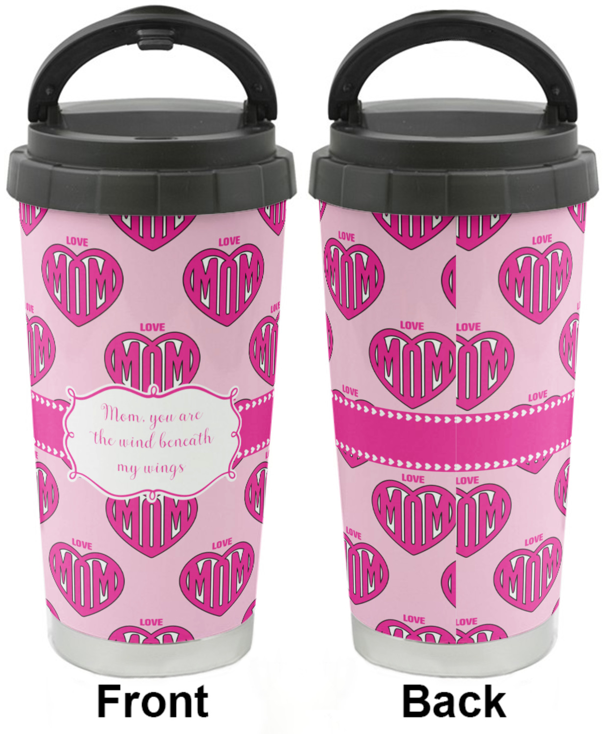 This sleek and tapered 16 oz stainless steel travel cup is a perfect fit in the hand. With the strip of visible stainless steel on the bottom, you'll be feeling classy!