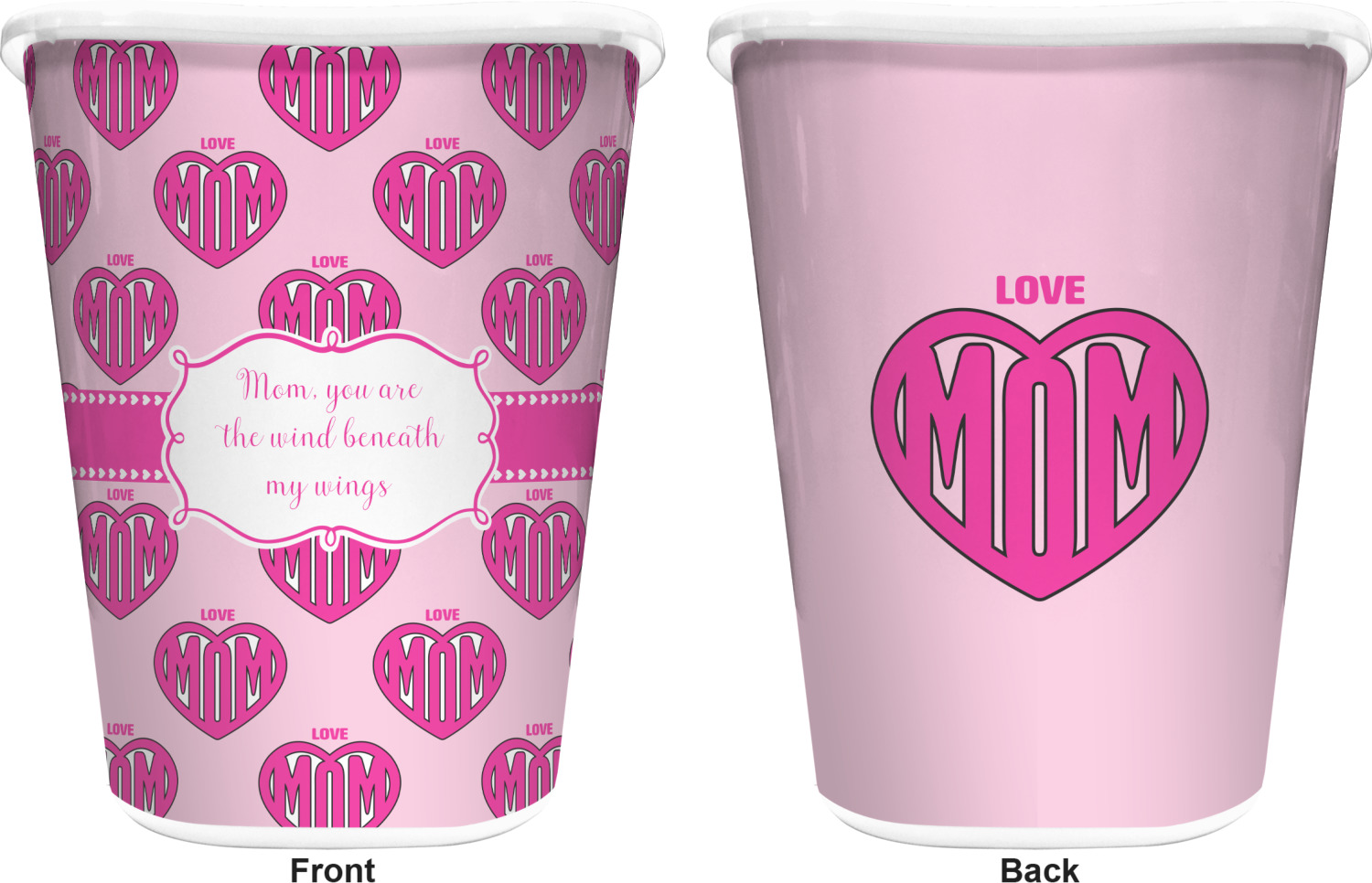 This design is perfect for Mother's Day and to show your mother how much you really love your mom! Our design background have the words Love & Mom; and the word Mom in inside a heart. We added our ribbon with hearts; we chose to use pinks and white and we chose to use a large label with the words "Mom, you are the wind beneath my wings".