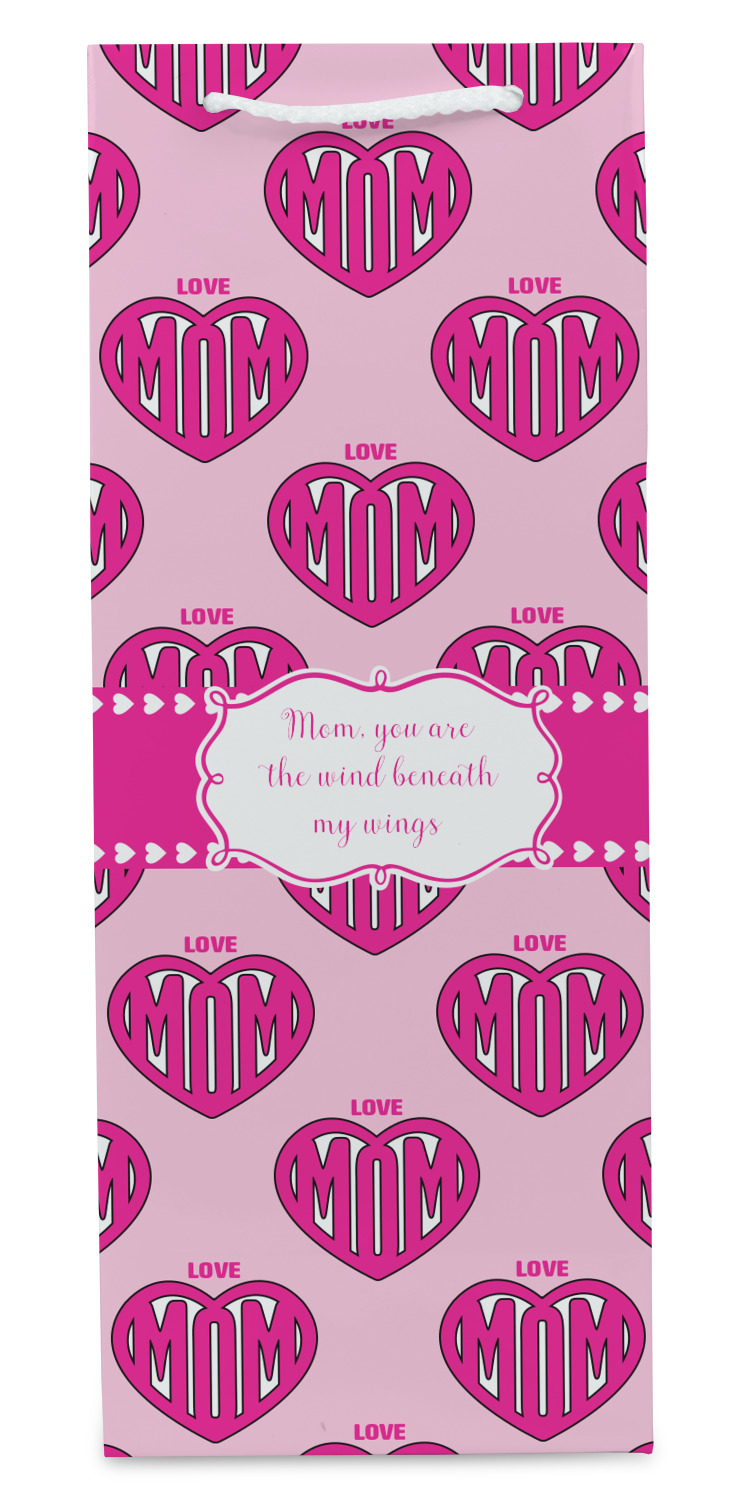 This design is perfect for Mother's Day and to show your mother how much you really love your mom! Our design background have the words Love & Mom; and the word Mom in inside a heart. We added our ribbon with hearts; we chose to use pinks and white and we chose to use a large label with the words "Mom, you are the wind beneath my wings".