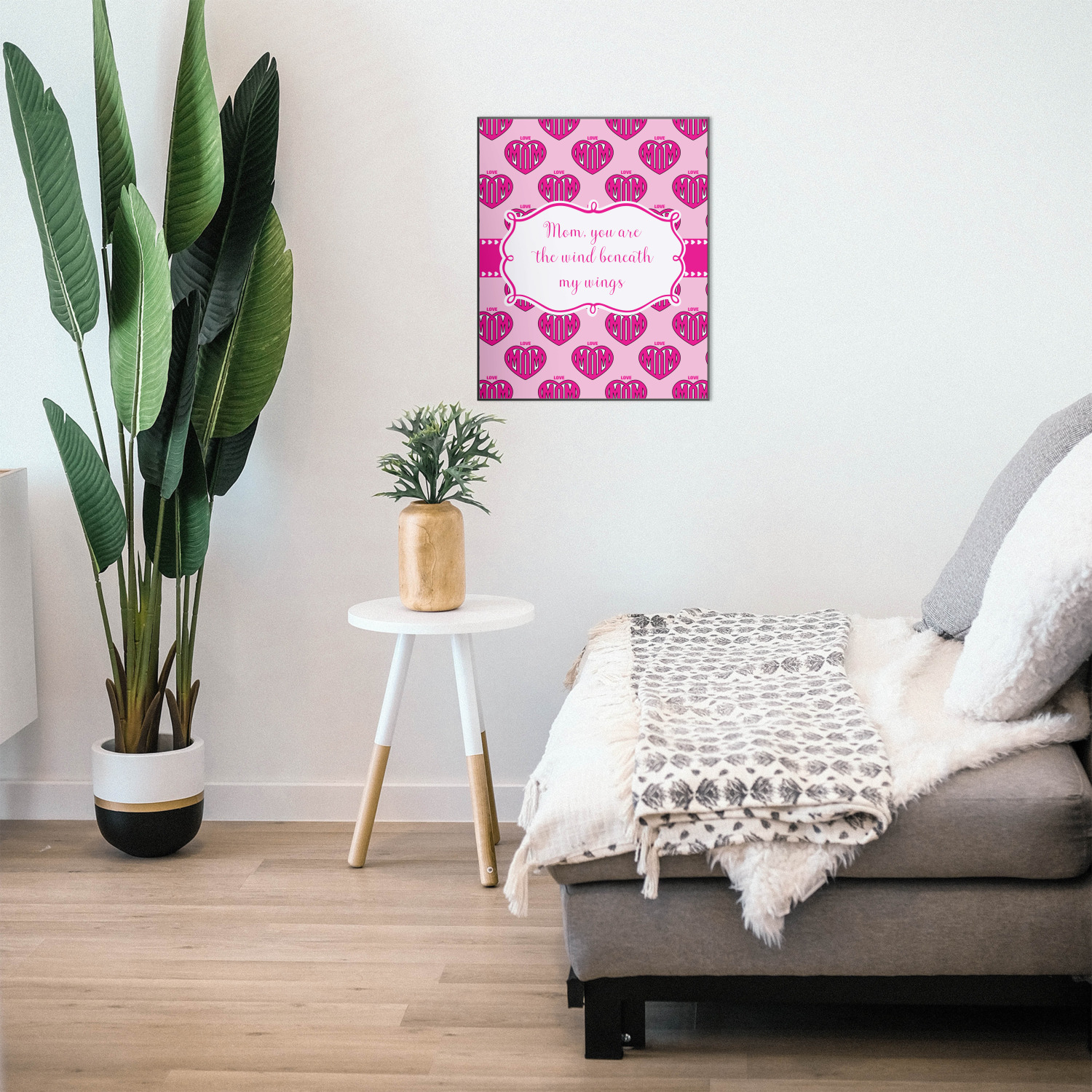 This design is perfect for Mother's Day and to show your mother how much you really love your mom! Our design background have the words Love & Mom; and the word Mom in inside a heart. We added our ribbon with hearts; we chose to use pinks and white and we chose to use a large label with the words "Mom, you are the wind beneath my wings".
