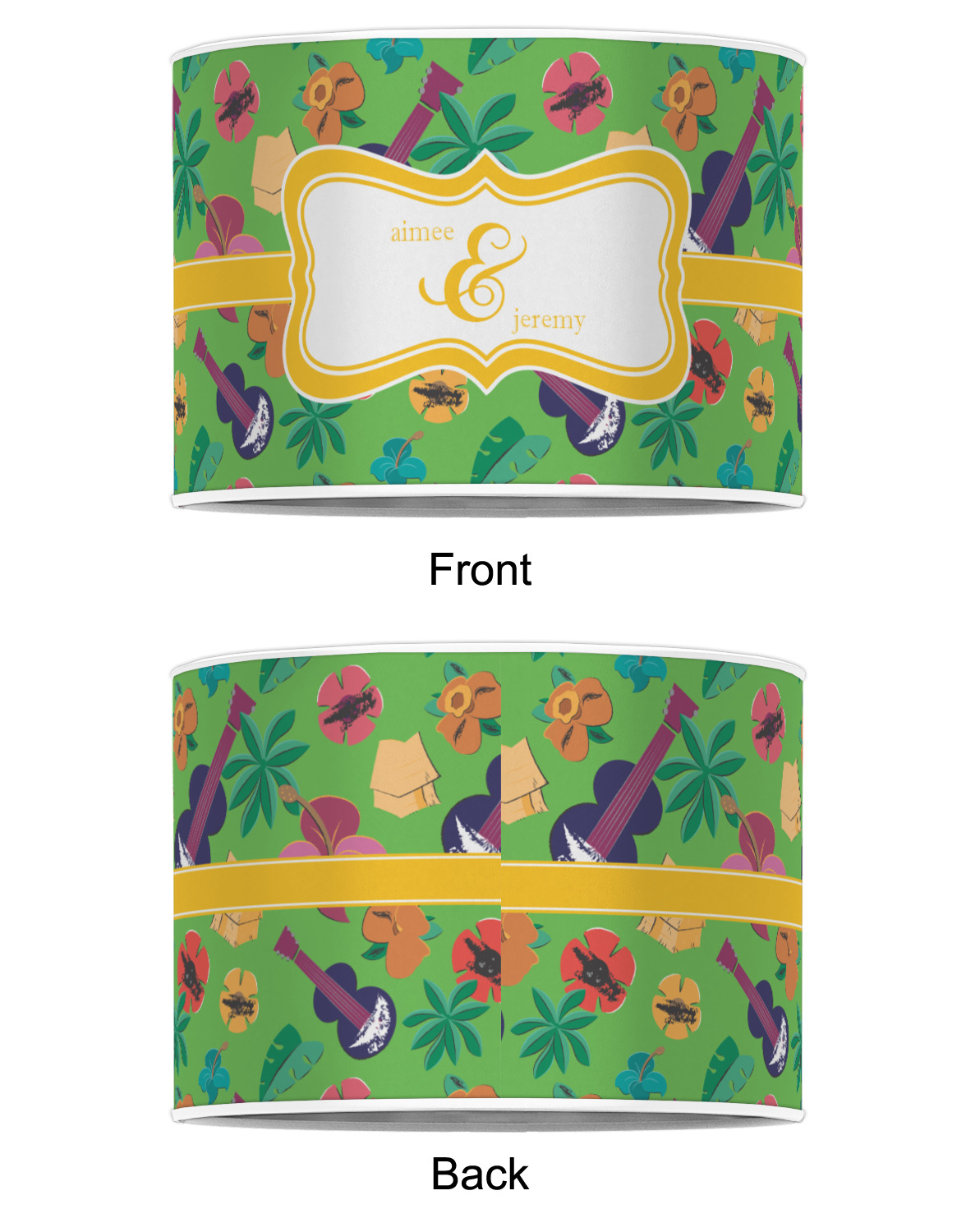 Our personalized drum lamp shades are available in 2 different materials: Poly-film or fabric. Poly-film lamp shades come with the option of white or black border trims to best match your customized design. Fabric lamp shades are finished with a rolled edge for a clean modern look.