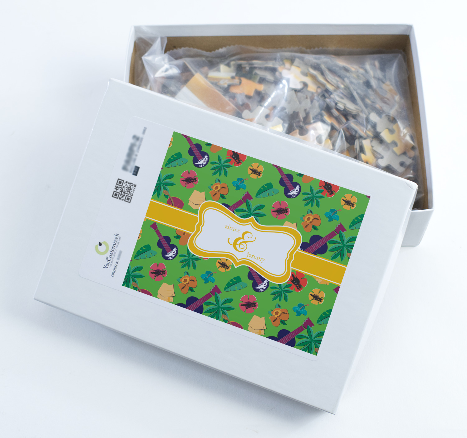 Depending on the look you are trying to achieve, you can add; a thematic pattern or background, with a photo in a frame and text or personalization to your puzzle. Basically if you can imagine it, you can design it!