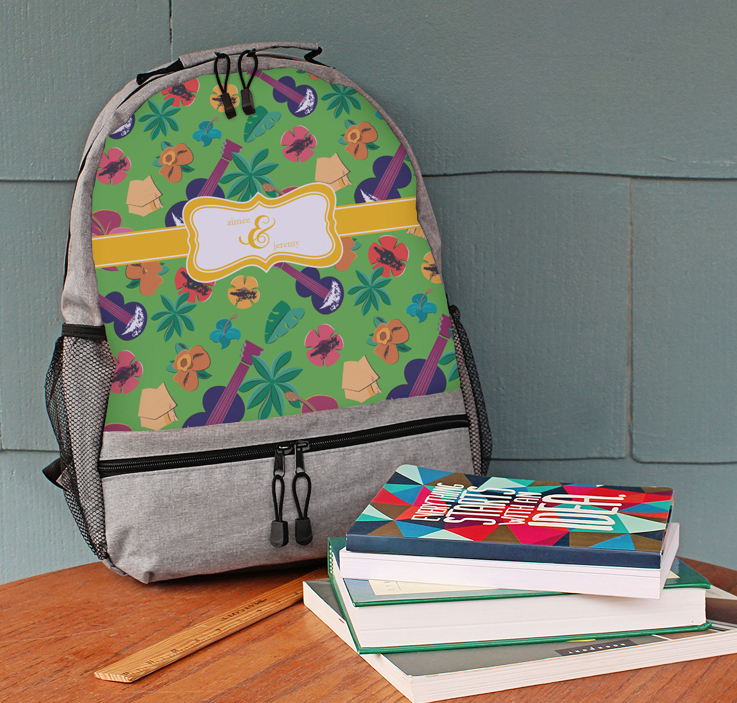 What's more classic Hawaiian than ukuleles, tiki huts, and flirty flowers? This bright design will send you straight back to better days, spent lounging on a beach in some tropical paradise.