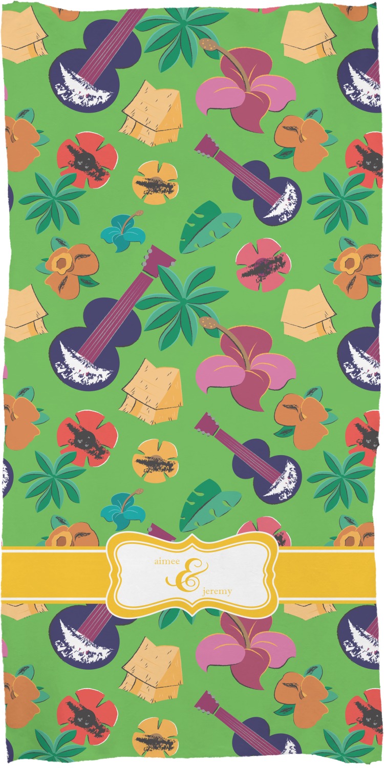 These customized bath towels are slightly larger than your standard towel and are the ideal size for wrapping around your body. They measure approximately 60" x 30". Your customization is displayed across the entire front face of the towel, while the back is white.