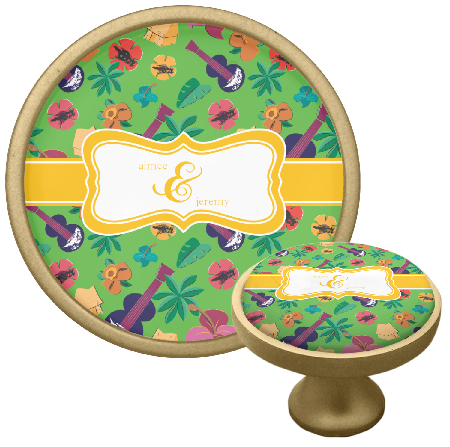 We sell these cabinet pulls in two different colors to better match your room's color scheme. We offer an oil-rubbed bronze base that is black in color, and a satin nickel option, which has a silver color. Your design is displayed across a high gloss vinyl insert that is placed on top of these cabinet handles. We then place a 1 inch thick glass cabochon atop the design, which seals the cabinet knob and makes the colors of your customization stand out. These custom cabinet knobs are approximately 1.3 inches in diameter. Your purchase includes a 1 inch screw that can be used to mount the knob to any cabinet in your home.