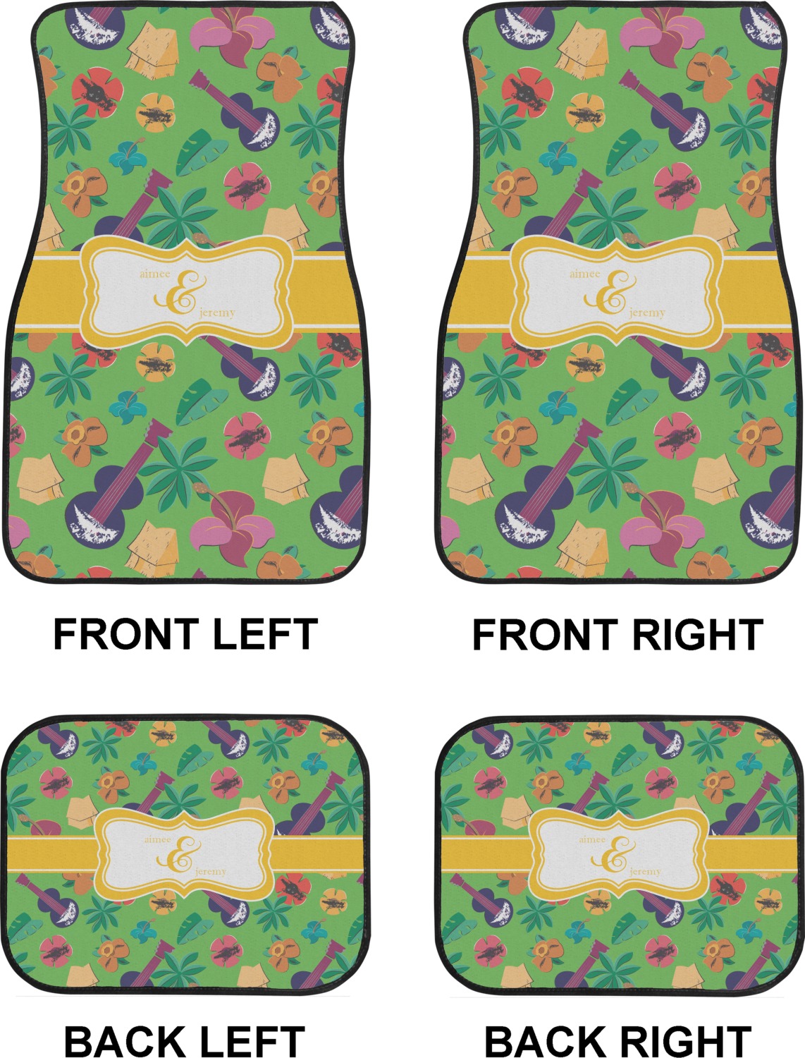 We craft our auto floor mats mats from polyester, apply a black finish to the edges, and lined at the bottom to prevent slippage. These mats protect your floors from grass, mud, and any accidental spills. We display your personalized design on the front face of each mat. The sizes of these car floor liners are standardized to provide a versatile fit for all vehicles. The front rows car mats measure at 17 by 26.5 inches, while the back rows measure at 17 by 13 inches. We sell three packages of car floor mats. You can purchase a pair of front row car mats, a pair of back row car mats, or a set of front row and back row car mats. To make an informed purchase, we recommend measuring the surface area of your car floors.