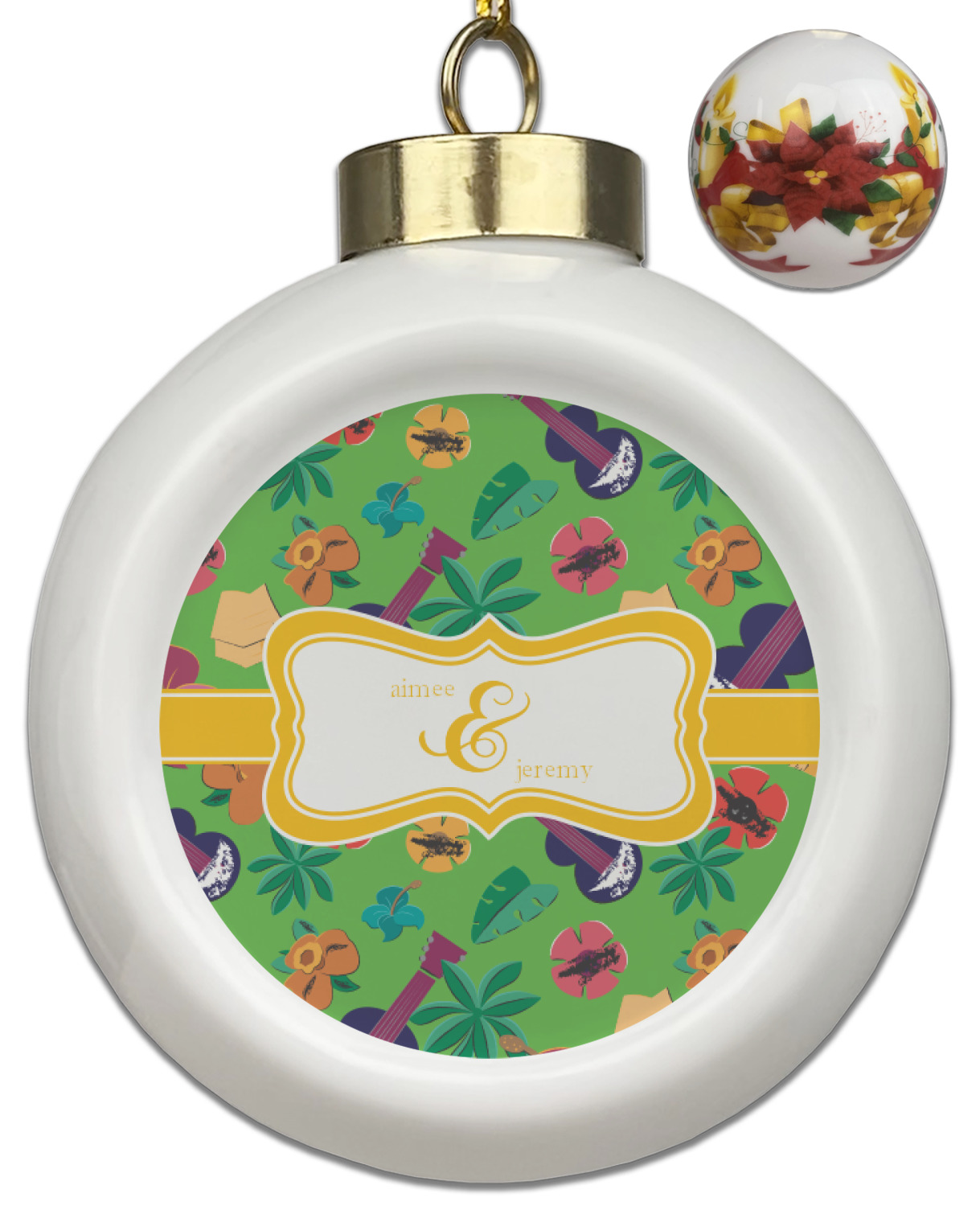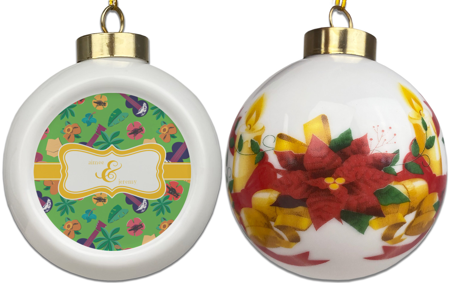 Our Christmas ornaments are a unique ceramic ball shape with a twist as it has a flat face to display your custom design! Select from one of our two design types - Christmas Tree or Poinsettia Garland - to adorn the curved back of your personal design. Each ornament measures 3H x 2.5W x 2D accompanied with a gold string accent for finishing touches to hang on your beautiful Christmas tree!