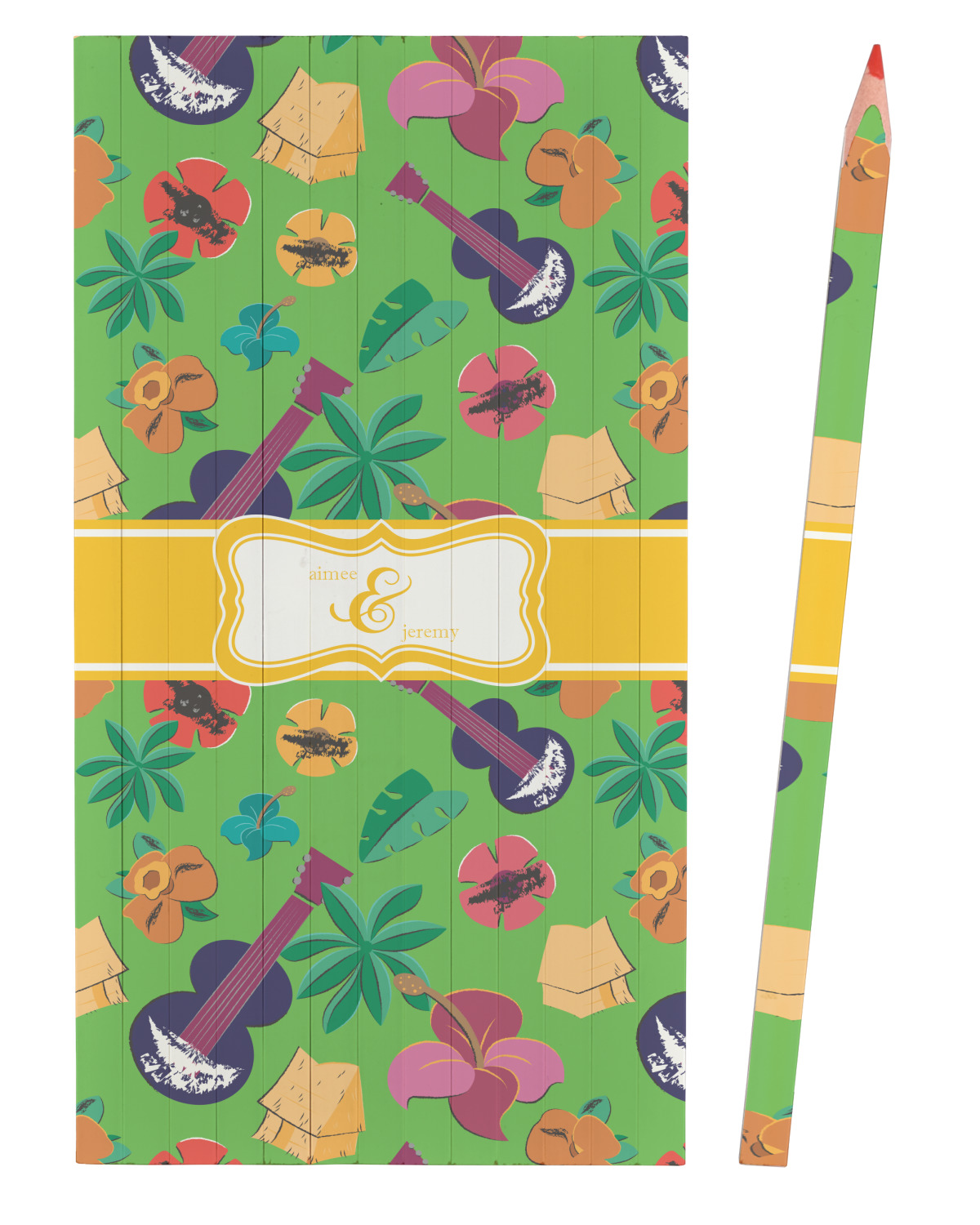What's more classic Hawaiian than ukuleles, tiki huts, and flirty flowers? This bright design will send you straight back to better days, spent lounging on a beach in some tropical paradise.