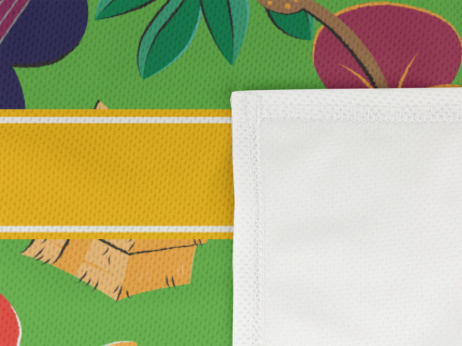 What's more classic Hawaiian than ukuleles, tiki huts, and flirty flowers? This bright design will send you straight back to better days, spent lounging on a beach in some tropical paradise.