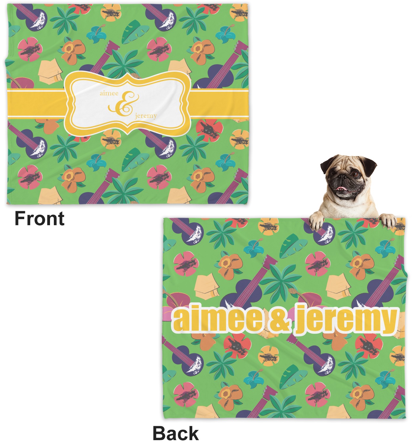 These dog blankets are crafted from a gentle, soft-to-the-touch, minky material. We print your customizations, either matching or differing, on both the top and underside of the blanket. These personalized dog blankets are available in two sizes: regular and large. Our regular size, at 40" x 30", accommodates small and some medium size dogs. At 60" x 50", our large dog blanket is a better fit for bigger breeds. Though specialized for dogs, these blankets still make a thoughtful gift for your favorite feline, or any other pet in mind!