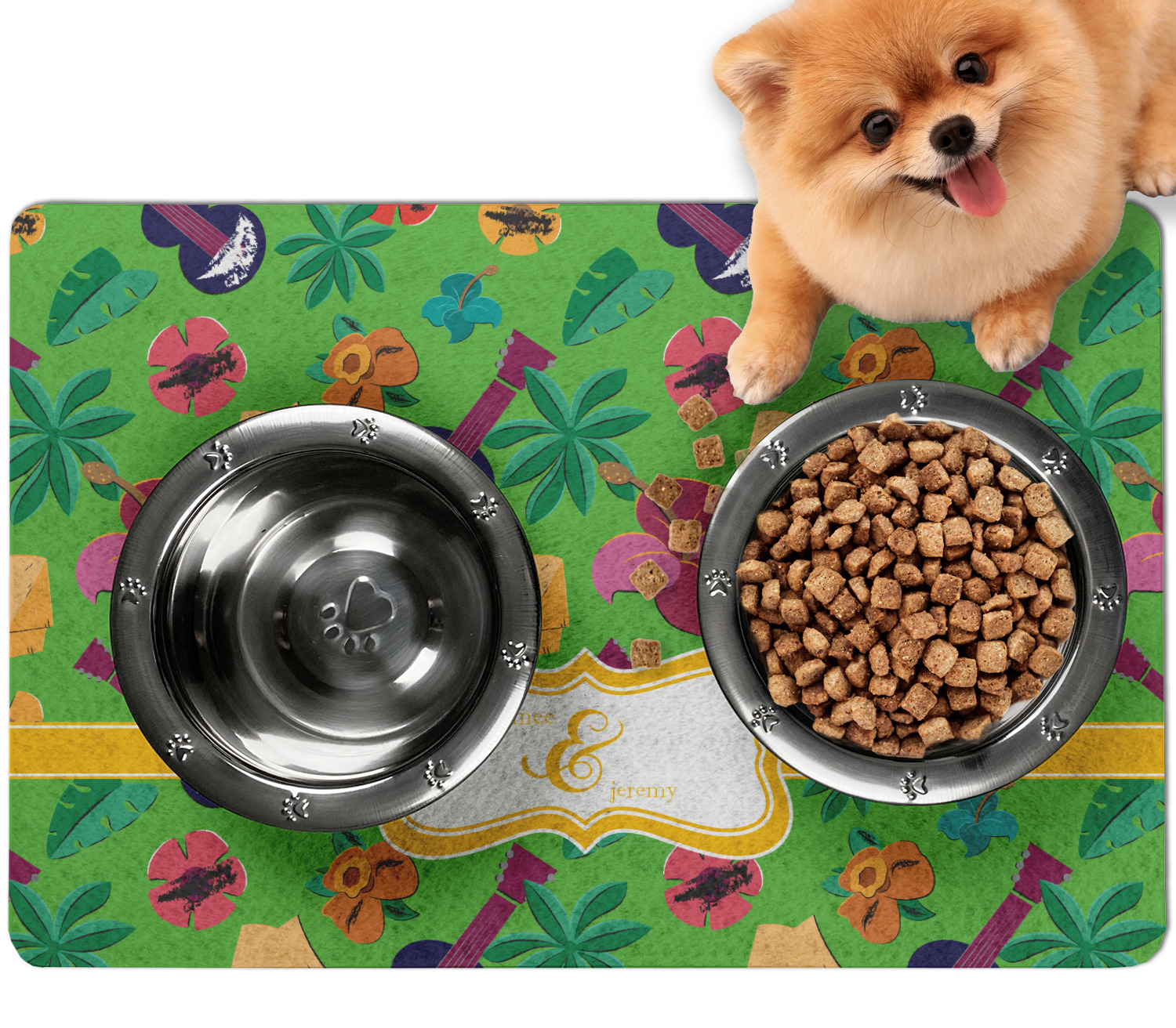 This dog bowl mat, fabricated from polyester, proudly displays your customized design on its top, while its bottom includes a non-slip rubber. This feature allows it to remain firmly in place, even when your dog spills his/her water. With 3 sizes available (18" x 12", 24" x 18", 30" x 24"), the pet food mat has ample space for both a food and water bowl for any sized dogs. Though specified for dogs' use, these mats are also a splendid option for cats.