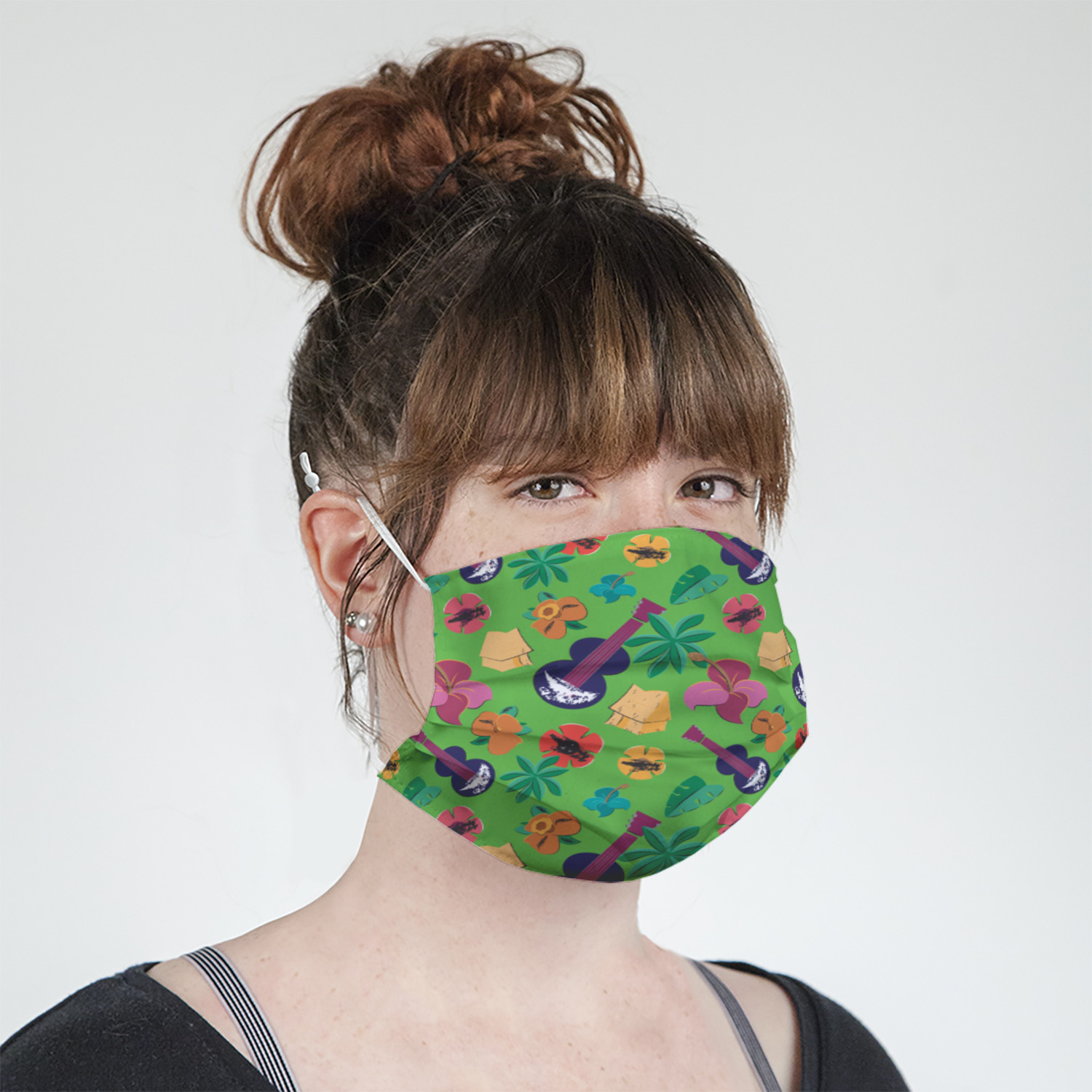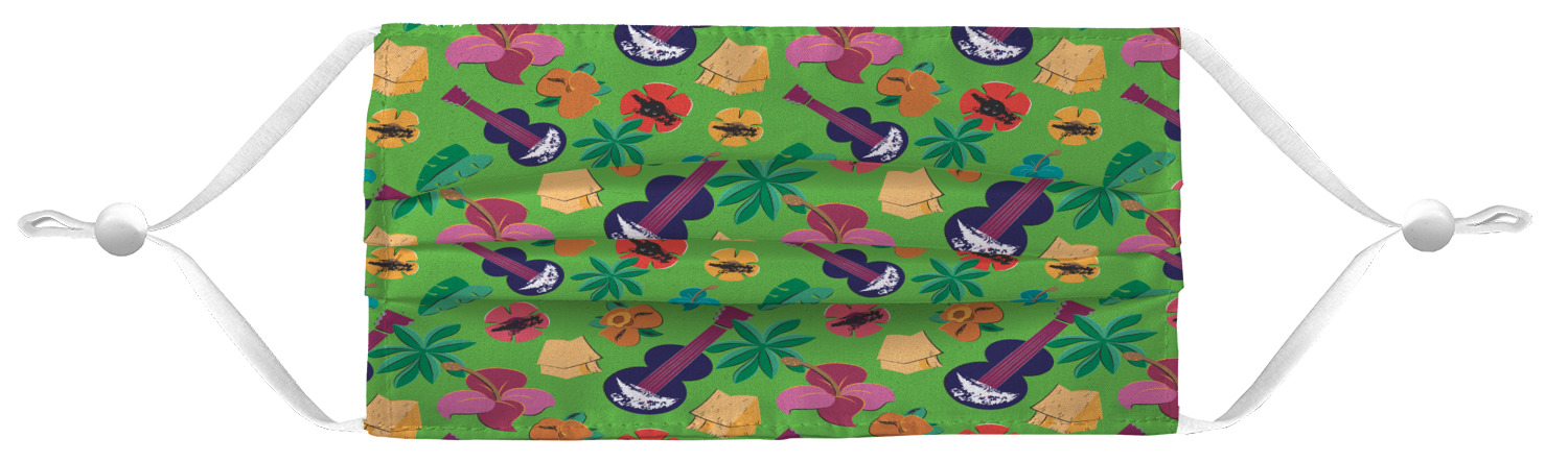 These fun face masks are 7" wide and 3.5" high. They feature pleats, adjustable ear loops, and are made with two layers of fabric. The top layer where your design is printed is a breathable polyester sheeting, while the inside layer is a soft microfiber polyester