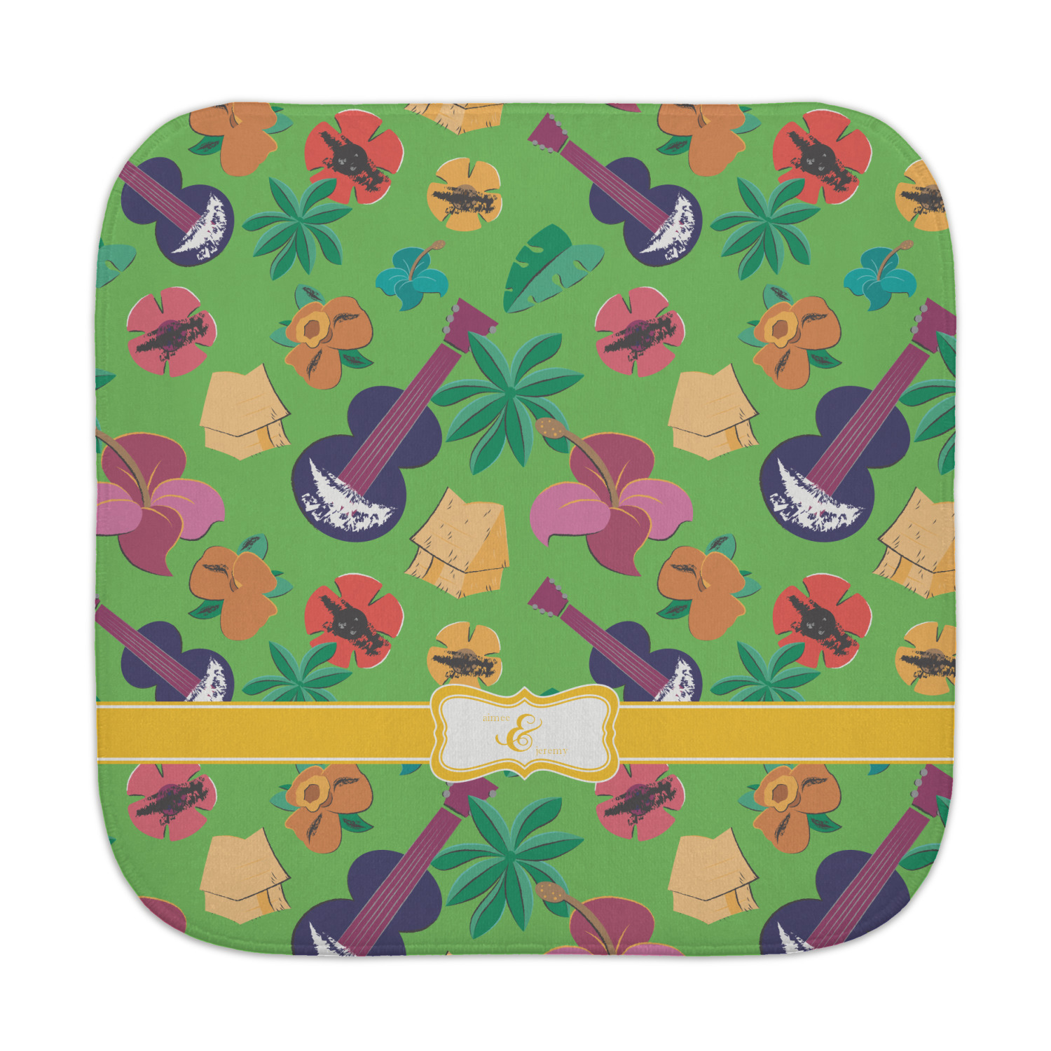 What's more classic Hawaiian than ukuleles, tiki huts, and flirty flowers? This bright design will send you straight back to better days, spent lounging on a beach in some tropical paradise.