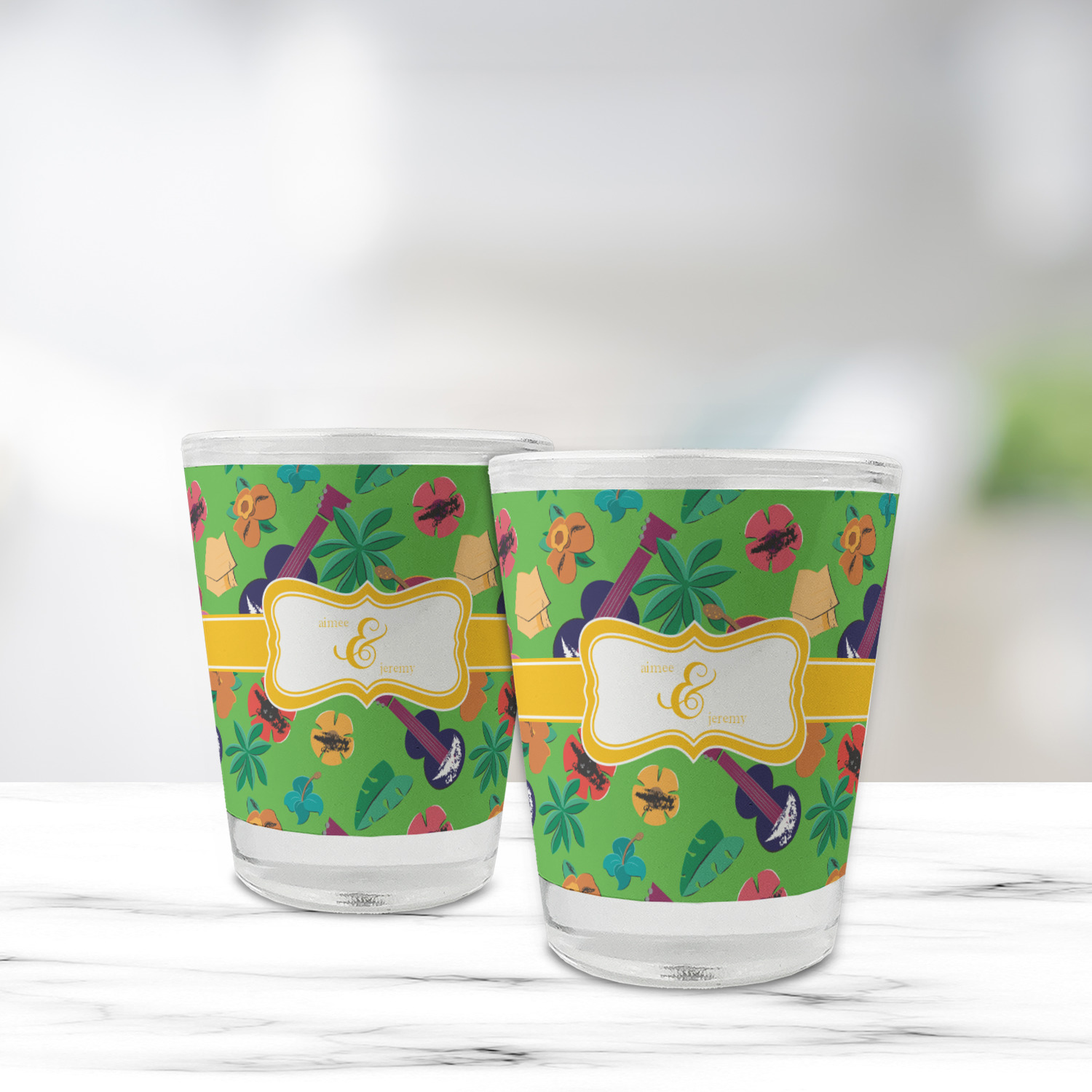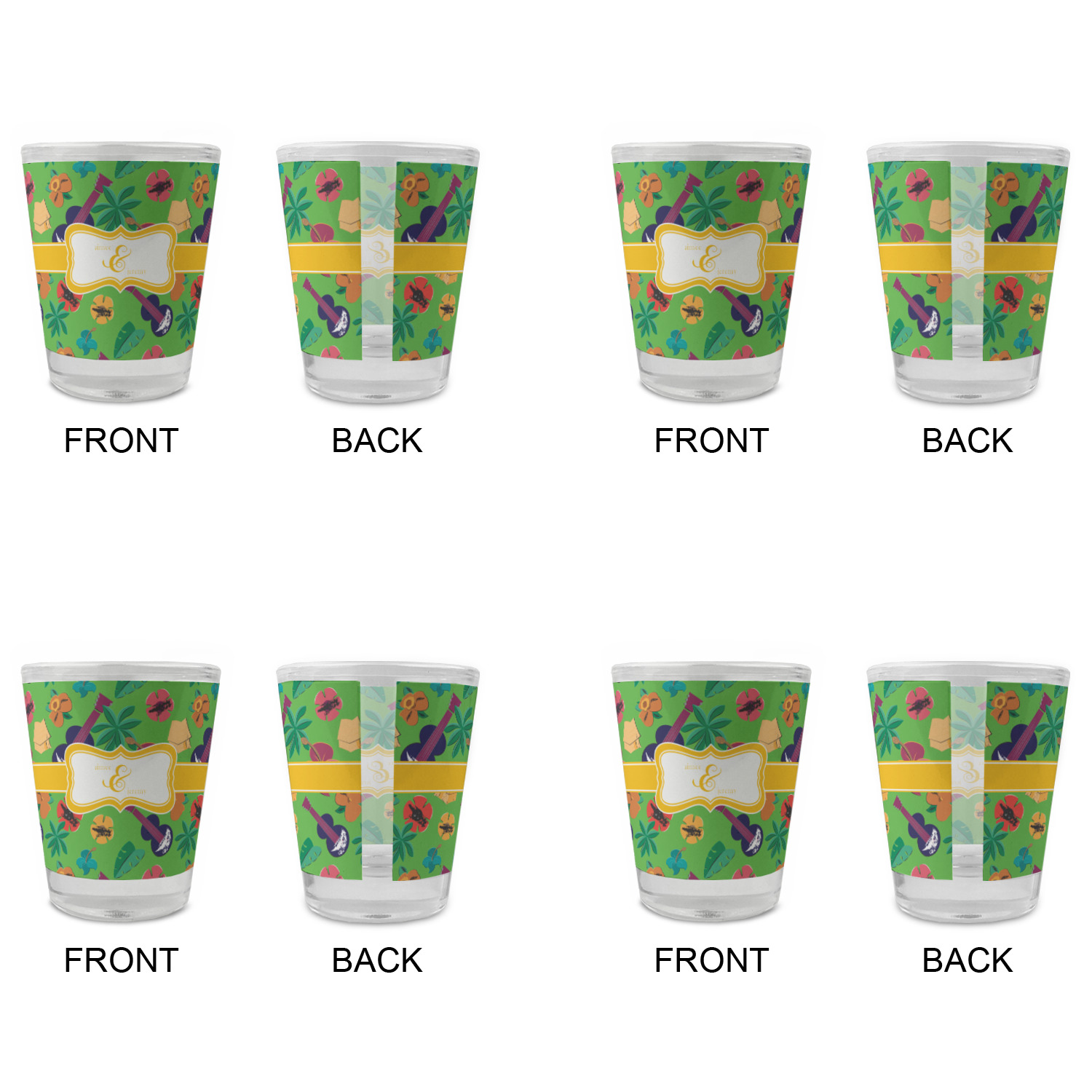 Made with frosted glass, these shot glasses are printed in full color with the design of your choice. They are a standard 1.5oz shot glass and are 2.4" tall. The print is wrapped around the shot glass in a full wrap and boldly displays your customization.