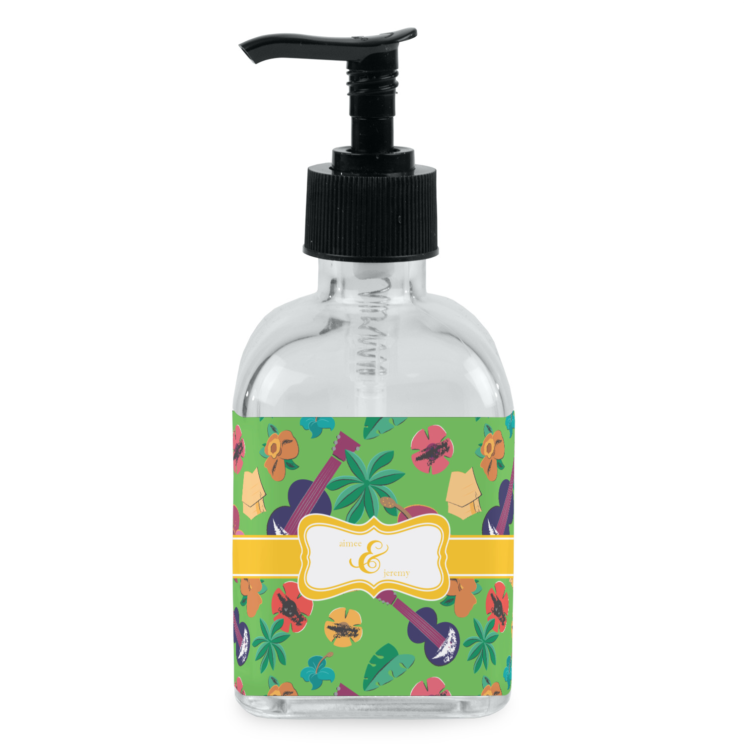 Crafted from a high-quality glass, these soap dispensers and lotion dispensers are durable and robust, while still looking elegant. They are sold with black pumps. Each soap dispenser pump measures at 6.5 by 2.25 inches. On these soap pumps, we display your customized design on a personalized vinyl adhesive on three sides. That way, you can judge how much liquid is in the bottles from the back.