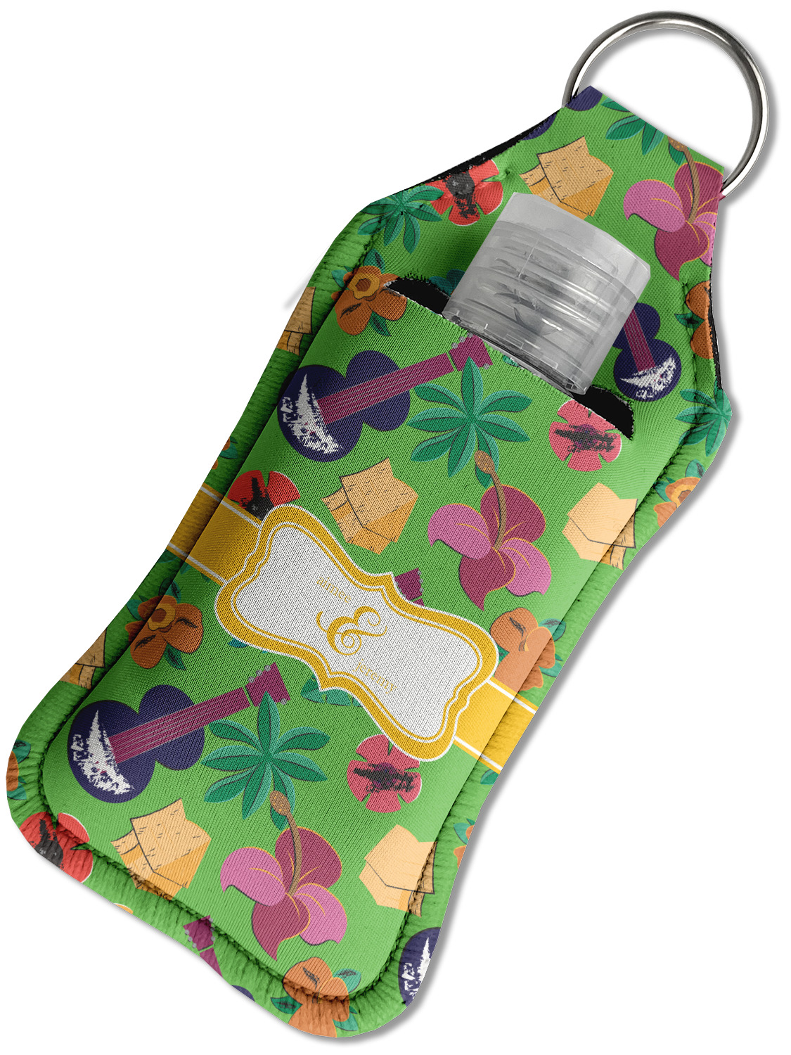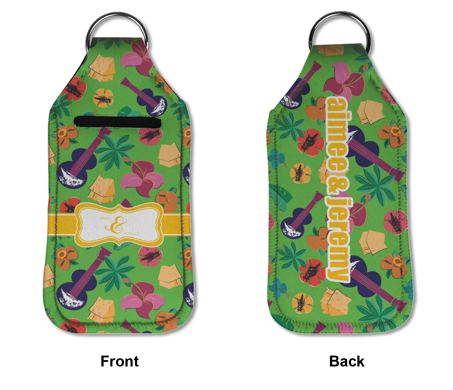 Each hand sanitizer holder comes with its own empty travel-sized, refillable hand sanitizer sure to fit snug in your customized sanitizer case! Our hand sanitizer cases are a durable, yet soft neoprene material sure to last any daily activities or travel agenda. Customize and personalize a hand sanitizer bottle holder with one of our two sizes - small (4.25" x 2.25") or large (5.5" x 2.5"). Each travel sanitizer holder comes with a keyring for attachment on bags, keys, or more!