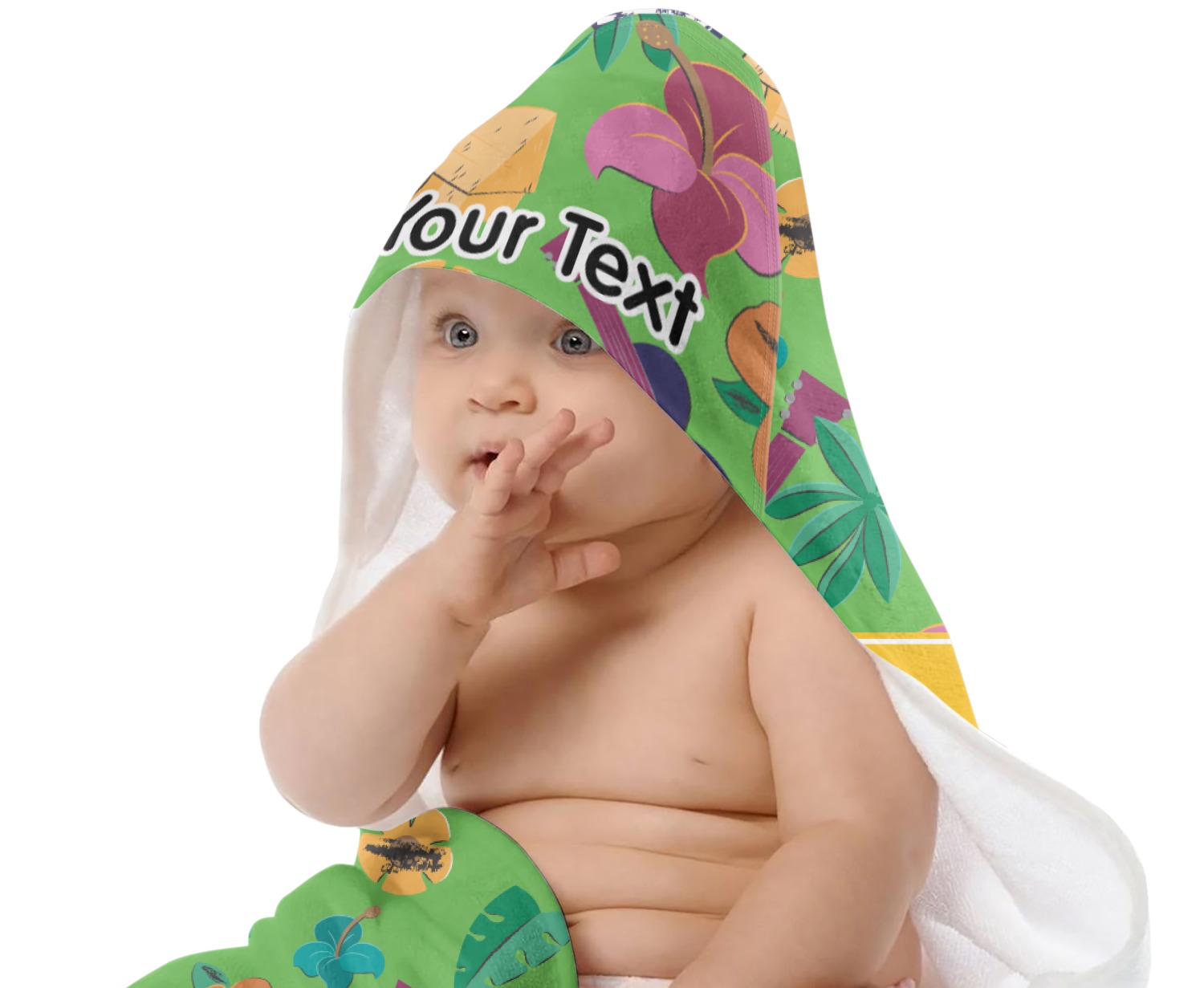 This baby towel is made with a plush microfiber velour and cotton terry. and thus will be soft and gentle against your newborn's skin, but also, very absorbent. Your customization is printed across the front & the hood, while the inside is a classy white.