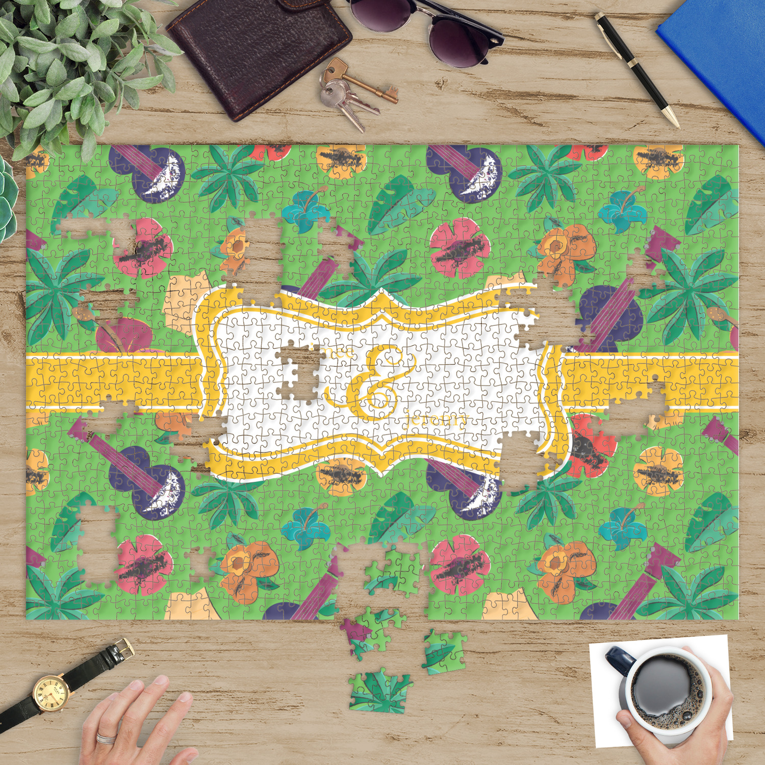 Depending on the look you are trying to achieve, you can add; a thematic pattern or background, with a photo in a frame and text or personalization to your puzzle. Basically if you can imagine it, you can design it!